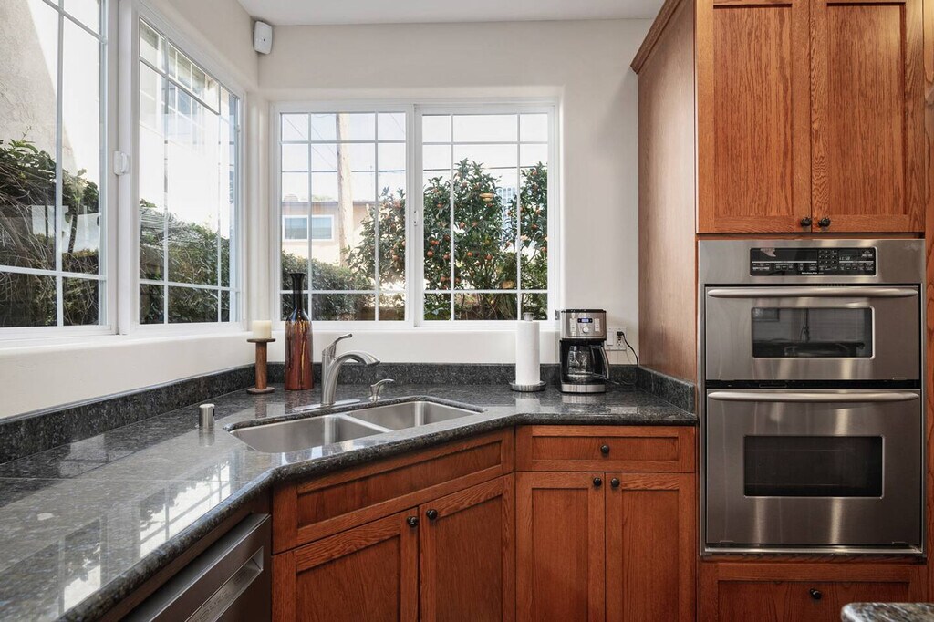 Feel at home in this modern, upscale La Jolla beach house, just minutes from Windansea beach and local surfing spots. Located on a quiet street in the desirable Village district of La Jolla, this home is very private and entry is through the front gate. This spacious home features Brazilian Cherry hardwood floors, high ceilings, skylights, and an open-concept living space. The gourmet kitchen includes an oven, microwave, side-by-side refrigerator, dishwasher, Viking 6-range gas cooktop, granite countertops, and a center island with 4 barstools. The step-down living room features a gray leather L-shaped couch, a gas fireplace, a TV, and a Bluetooth speaker. A full-sized washer and dryer are conveniently located in the laundry room on the 2nd floor. Bed linens, pillows, comforters, bath towels, beach towels, beach chairs, and blow dryers are provided. A highchair, plastic children's dinnerware, and toys can be rented for an additional fee of $79. Two-car garage provides off-street parking off the alley. With a large choice of restaurants, shops, and cafes within walking distance, this home is ideally located. Enjoy amazing sunsets over the beautiful La Jolla ocean from one of the three outdoor decks. The tropical backyard features lush landscaping, a patio table and chairs, and an outdoor gas grill. Occupancy is limited to 6 adults maximum. Your rental includes an arrival starter kit with toilet paper, paper towels, soap, coffee, tea, and water. Registration Number: STR-04431L, 634267 [SI]
