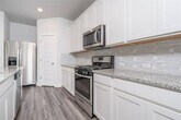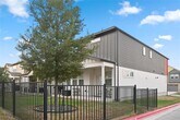 This free-standing condo in Easton Park combines modern design with everyday functionality. With its bold red-and-black exterior and thoughtful floor plan, this home is designed to impress and provide comfort. Inside, you’ll find an open layout with durable vinyl flooring, recessed lighting, and clean finishes throughout. The kitchen stands out with crisp white shaker cabinetry, quartz countertops, a glass tile backsplash, and a large island with bar seating that opens to the dining and living areas. A walk-in pantry, half bath for guests, and laundry room add convenience on the main floor. Upstairs, the primary suite offers stepped ceilings, an ensuite bath with dual sinks and walk-in shower, plus a generous walk-in closet. Two additional bedrooms share a full bathroom and can serve as guest rooms, an office, or flex space. The private backyard is fully fenced and includes a covered patio—perfect for outdoor dining or relaxing. Easton Park residents enjoy access to The Union amenity center, featuring a resort-style pool, fitness center, lounge spaces, and game room. Miles of hike-and-bike trails, pocket parks, and frequent community events add to the appeal. Conveniently located near the airport, McKinney Falls State Park, and just a short drive to downtown Austin.