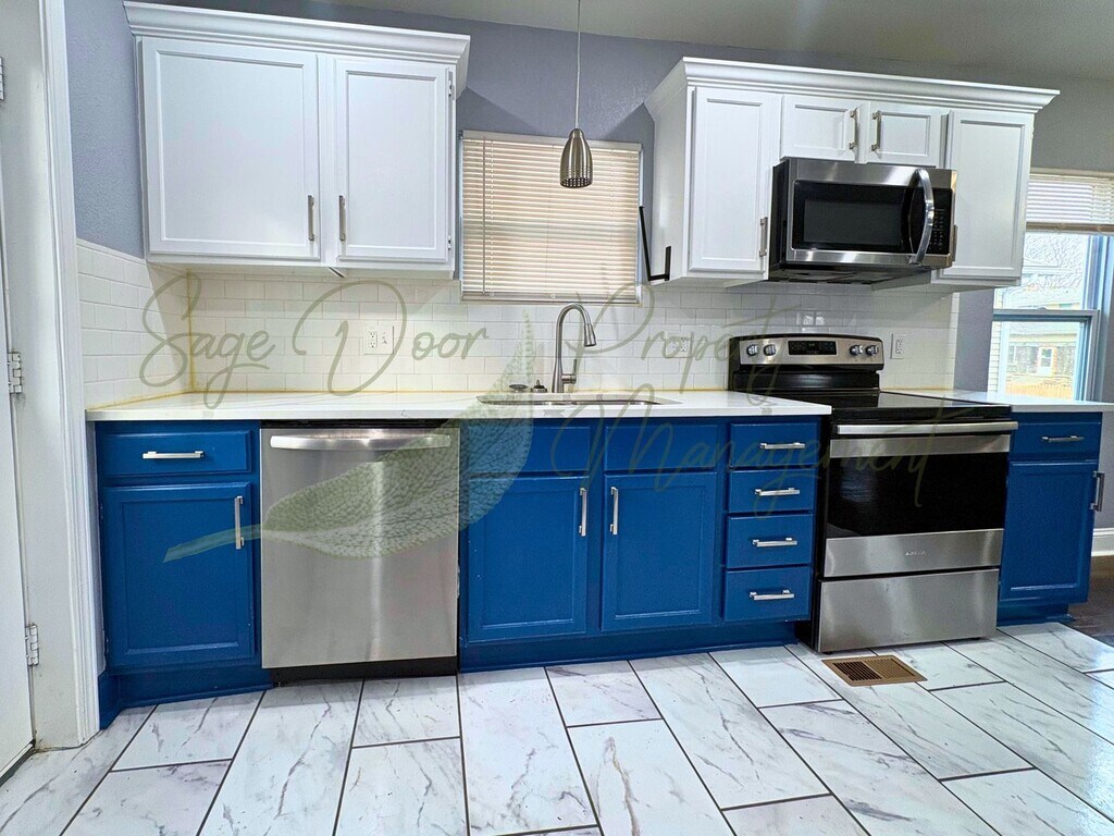 COMING SOON!!!!! Welcome home to this beautifully updated 2-bedroom, 2-bathroom residence offering a blend of classic charm and modern updates, plus a fully finished basement that provides exceptional additional living space. Step inside to find fresh neutral paint, updated lighting, and attractive flooring throughout. The spacious living room features hardwood floors and a decorative fireplace, creating a warm and inviting space for relaxing or entertaining. The updated kitchen features white cabinetry with striking blue lower cabinets, stainless steel appliances, modern countertops, a tile backsplash, and ample cabinet and counter space for everyday functionality. All three bedrooms offer comfortable layouts with great natural light. The home includes two full bathrooms, both updated with modern tile and fixtures. The finished basement provides a large bonus living area ideal for a second living room, home office, workout space, or recreation area. Outside, the home offers a covered front porch, a private yard, off-street parking, and central heating and cooling for year-round comfort. Convenient nearby dining options include Gates Bar-B-Q, LC’s Bar-B-Q, McDonald’s, Burger King, and Starbucks along the Wornall Road corridor. Grocery options such as ALDI and Price Chopper are also located nearby for everyday convenience. Local attractions and recreation include Swope Park, Swope Memorial Golf Course, the Kansas City Zoo & Aquarium, and the Southeast Community Center, providing access to trails, outdoor activities, and community amenities. Nearby medical and pharmacy options include CVS Pharmacy, Walgreens, Research Medical Center, University Health – Truman Medical Center, and St. Joseph Medical Center. School assignments are to be verified by the tenant and may include Center Elementary School, Center Middle School, and Center High School, with additional school options available within the Hickman Mills area. Transportation options include easy access to US-71 Highway, I-435, and I-49, with KCATA bus routes nearby and convenient commuting to Downtown Kansas City, Midtown, and the Country Club Plaza. Rent will be $1400 and pets are accepted. Deposit will be $1400 (base rate, upon approval). Sage Door Property Management