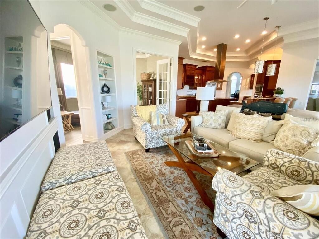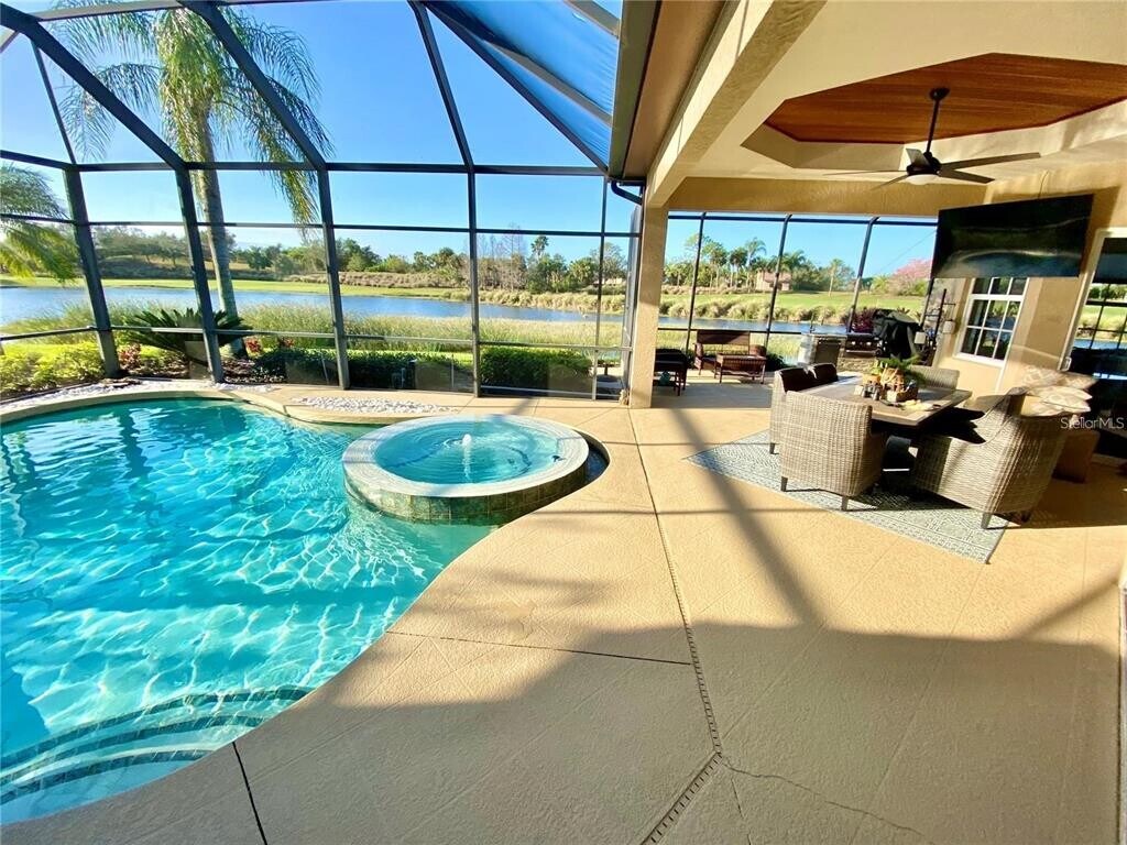 AVAILABLE FOR FEBRUARY AND MARCH. Welcome to this stunning home nestled in the Golf and Resort Style Gated Community of River Strand. A magnificent house with over 3,300 square feet heated; no carpet at all,3 bedrooms,3.5 bathrooms,huge custom office,a separate room set-up as an entertainment room with built in bar that can be utilized as a second office,if need it. This home consists of formal living room with fireplace,formal dining room,breakfast nook,family room,state of the art chef’s kitchen with all first-class appliances and a walking pantry that will satisfy any chef. Screened back lanai with heated pool/ jacuzzi,summer kitchen with outside sitting area,lounge area,sun area and dining area with TV; all overlooking the lake,golf course,and gardens with the most stunning sunsets.. All this in a fabulous open plan that brings together all areas inside and outside,excellent for entertainment. A half bath by the pool and main areas,laundry room with washer,dryer,utility sink; and a 2 drive-in car garage with remote controls and additional parking space compliment this stunning home. Split plan bedrooms with Master bedroom with King size bed,sitting area,exotic and elegant master bath with oversized tub,“jet” shower and private toilet room; master bedroom doesn't have a walking closet,only a small closet. The master bedroom is on the east side of the house for total privacy. A Second Master suite with King size bed and private bathroom with shower/tub combination and a third bedroom with King size bed and almost a private bathroom with shower; these rooms are located on the other side of the house and away from the main open areas so they can maintain their own privacy too. Six sets of sliding glass doors showcase spectacular views of the golf course and lake,and the stunning sunsets creates an open house concept where the exterior and interior flow in perfect harmony. River Strand Golf & Country Club is a gated,resort style warm and friendly community with a 27-hole Arthur Hills designed golf course,9 Har-Tru Tennis Courts,8 Pickleball courts,2 Resort-Style Pools,6 Satellite Pools,Clubhouse with restaurant,social events,Community Center & 2 fitness centers in this luxury gated community with 24 hr. security & lawn maintenance. Convenient located close to I-75,COSTCO,Lakewood Ranch,University Town Center Mall,University Parkway,downtown Sarasota,Bradenton,beaches,Tampa and more. Membership transfer of $572.45 non-refundable to River Strand gives you access to all amenities including golf. Excellent for corporates,short term leases/ rentals,people waiting for their house to be ready,guest looking for leisure and comfort and more. Pets OK. Off season/ANNUAL (April - November) $6,500 + utilities. High season (February– April) $14,000. Truly a Paradise for those who appreciated the best in life. Welcome HOME,Welcome to PARADISE! seasonal rental,corporate leasing,annual rental,turnkey furnished,dogs ok,short term rental,Baseball,IMG,tennis,golf,spring training MLS# A4678970