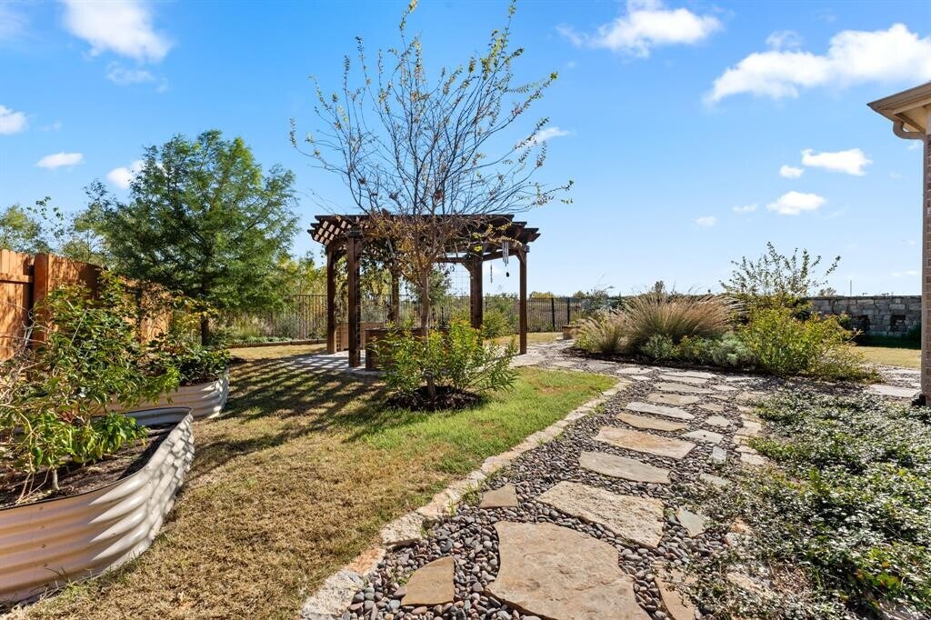 Beautiful property on a private cul-de-sac in Easton Park, in the Bryant Park community. The home offers large open floor plan with an office/media room and second living area attached to two of the bedrooms; the primary offers views of the beautiful backyard and well designed bathroom. The owner has created a backyard oasis with gazebo, sitting benches and even a waterfall with an array of foliage and trees surrounding the pathway. MLS ID 1594985