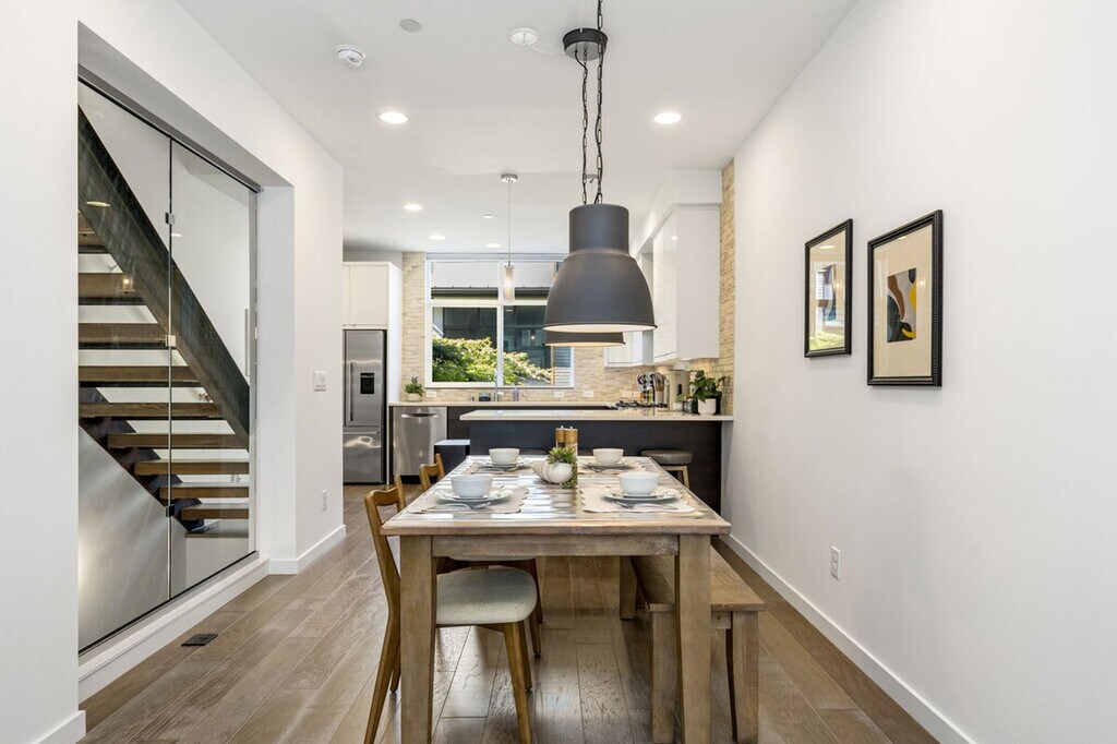 Feel at home in this bright and comfortable 3-bedroom, 2-bathroom townhome located just one block from the heart of Seattle. With an open layout and stylish touches throughout, this townhome is perfect for families, friends, or business travelers. Nestled on a quiet street in Seattle’s Queen Anne neighborhood, the home is just steps away from iconic landmarks like the Space Needle, Climate Pledge Arena, and the Gates Foundation. The house spans four levels, with a few steps leading to the entry, and includes a basement with a one-car garage. The townhome features a fully stocked kitchen with appliances, cookware, silverware, servingware, spices, and a coffee machine, making it ideal for preparing meals. The living room is equipped with a smart TV, and the home offers eco-friendly mattresses made with organic and plant-based materials for a comfortable and chemical-free sleep. Enjoy the Seattle summer heat with A/C available in the living areas and one of the bedrooms. Additionally, there is a deck with comfortable outdoor furniture and a fire pit table for alfresco experiences. The property includes an attached garage for parking, accommodating small vehicles and mid-size SUVs comfortably. A city-issued street parking permit is also provided on a first-come, first-served basis. A fee of $250 will be charged if the permit is lost or not returned. The townhome's prime location offers excellent walkability and access to public transit, making it easy to explore Seattle. It's a 7-minute walk to Climate Pledge Arena, an 8-minute walk to the Gates Foundation, and a 10-minute walk to the Space Needle and MoPOP. Kerry Park is a 13-minute walk away, while Amazon Spheres and South Lake Union are a 5–8 minute drive. Pike Place Market, Downtown, and Capitol Hill are just an 8–10 minute drive away. The townhome is not handicap friendly and requires comfort with stairs due to its multiple stories. Guest access is granted via a smart lock. The home is not pet friendly, with a $500 fine for unauthorized pets. Parties and events are strictly prohibited, with quiet hours between 10pm-8am, and a $500 fine per violation. Smoking or vaping of any kind is not allowed on the property, including outdoor areas. Shoes are not permitted inside the home. Registration Number: STR-OPLI-25-002495 [SI]