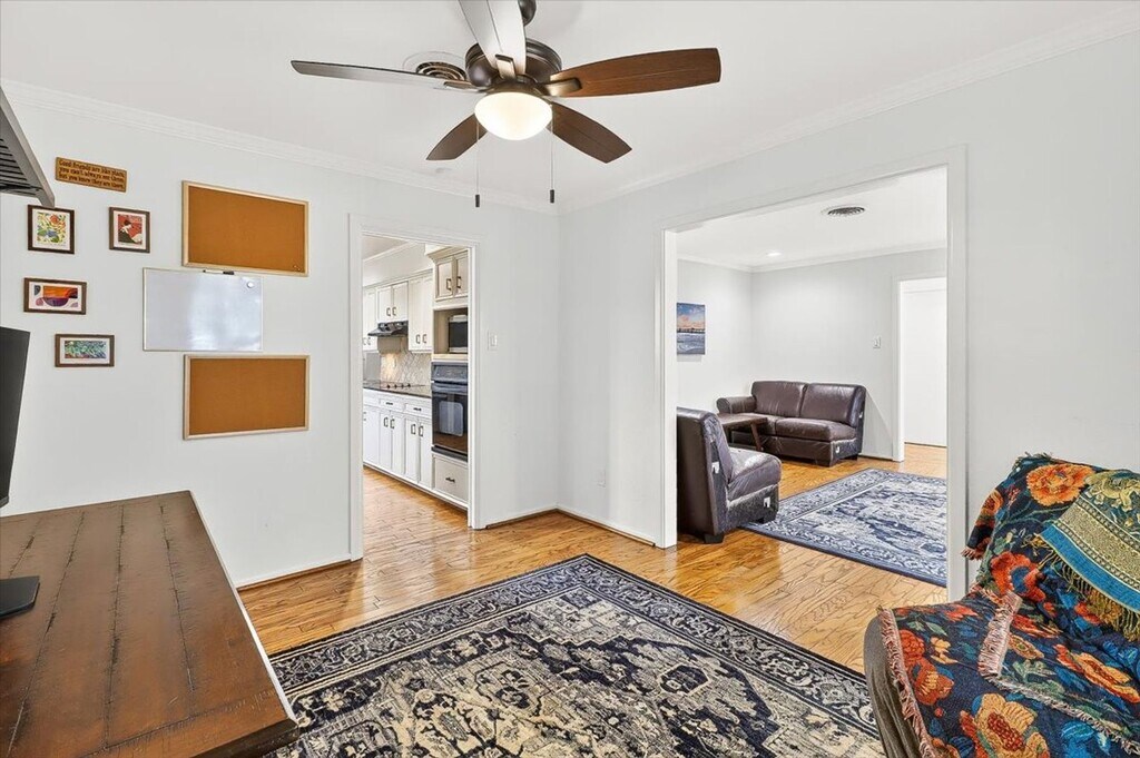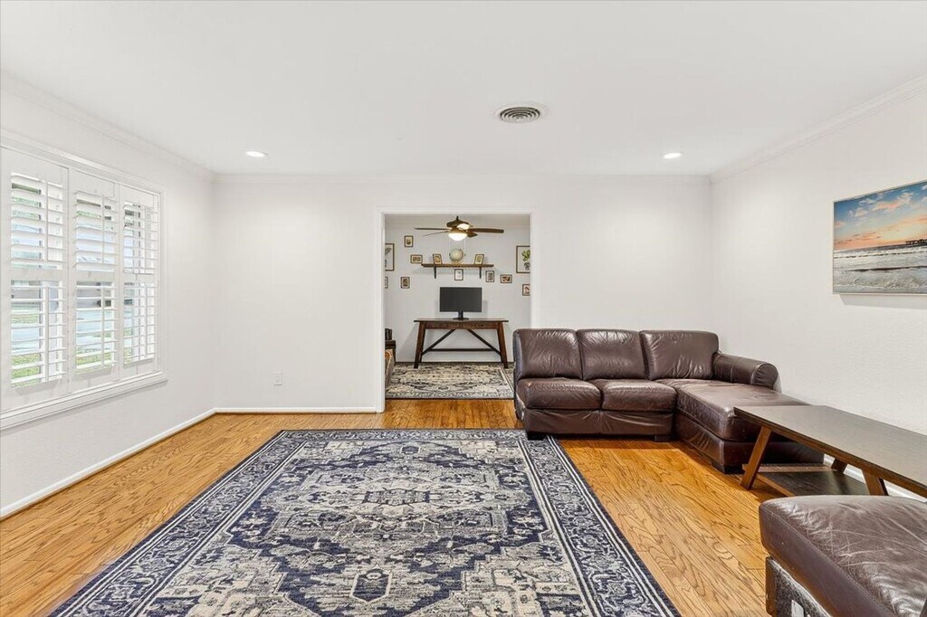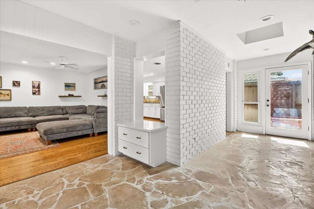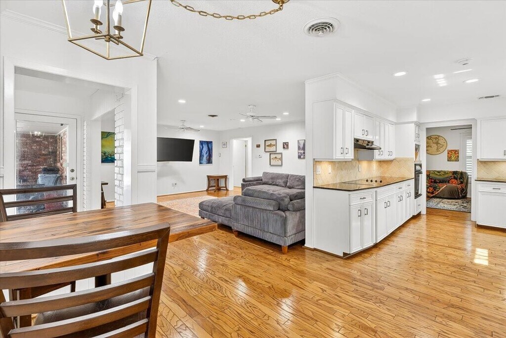 This brick home in Corpus Christi offers three bedrooms and two full bathrooms with a large primary suite featuring an ensuite bathroom and private patio entrance. The main living area showcases hardwood floors, while secondary rooms are carpeted and spacious. The kitchen includes granite countertops, a tiled backsplash, custom cabinets, a breakfast bar, dishwasher, rock tile flooring in the kitchen area, and an electric cooktop. The property features three living rooms, two dining areas, a huge covered patio, rear wrap-around garage (converted and air conditioned), central heat/air, and a neutral color palette throughout. Landscaping is well maintained, and the location provides a short drive to downtown NASCC, the beach, SPID, Texas A&M Corpus Christi, hospitals, schools, and restaurants. Call today to schedule your viewing!