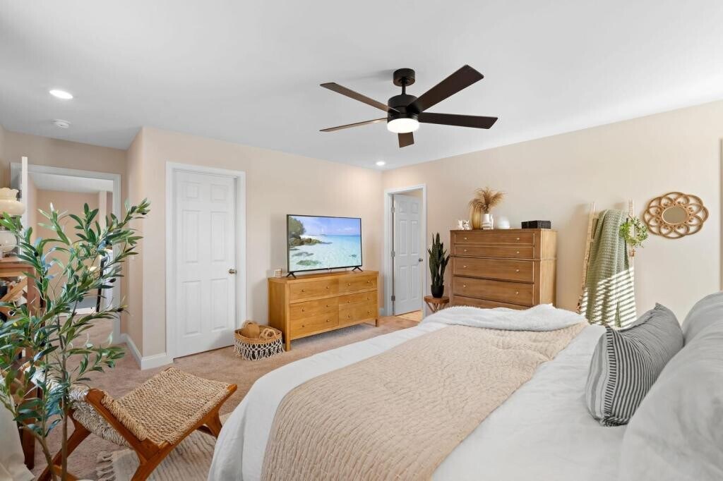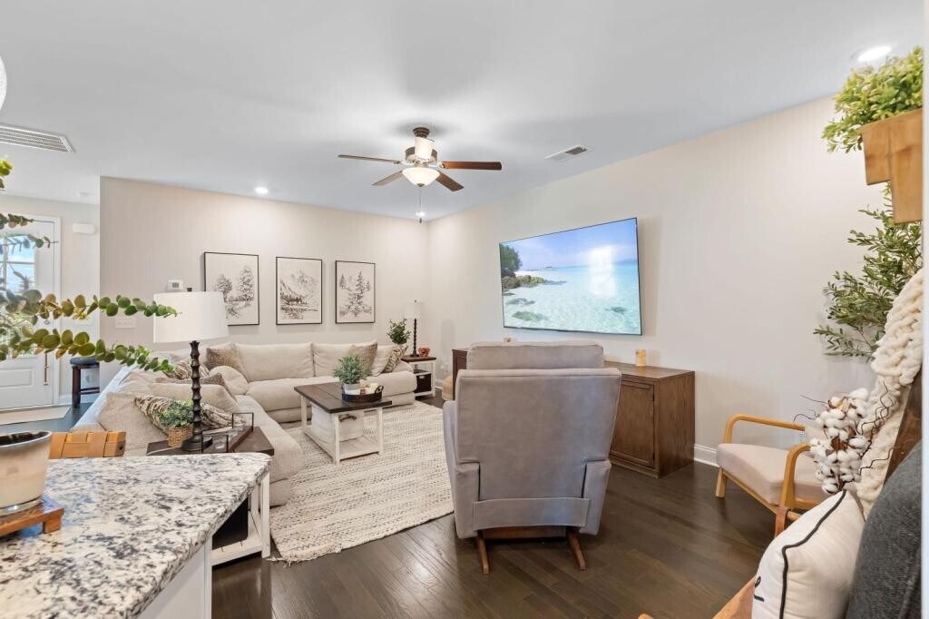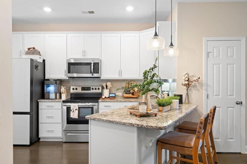$500 off first months rent for lease signed by Jan.15th! Spacious and bright 4-bedroom, 2.5-bath END UNIT townhome featuring tall ceilings, an open-concept living area, and a modern kitchen with a large island, pantry, and full laundry room. The upstairs primary suite includes two walk-in closets and an en-suite bath. Three additional bedrooms plus a flex room offer plenty of space. Enjoy low-maintenance living with HOA lawn care and access to resort-style amenities: pool, fitness center, and clubhouse. Conveniently located near shops, dining, and major commuter routes. Tenant responsible for all utilities. Pets allowed. Breed restrictions do apply. Pet Deposit $250.