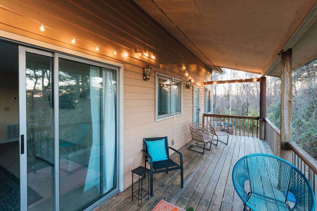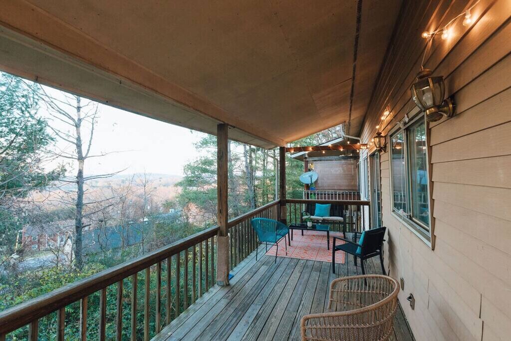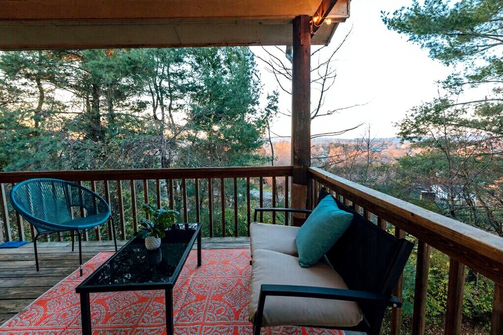 Welcome to this spacious apartment in Johnson City, offering a welcoming retreat directly across from Freedom Hall Civic Center, Liberty Bell Middle School, and Science Hill High School. Feel at home in this fully furnished apartment, which provides an ideal setting for families or groups looking to enjoy a comfortable stay. The large living room features a smart TV, perfect for relaxing after a day of exploring. The full kitchen is equipped with all the basics for cooking, and private laundry facilities are available for your convenience. Step outside to the covered deck, where you can take in picturesque views while enjoying comfy seating and ambient lighting. This apartment is right across the street from running/walking trails that wind through a large High School campus and its sports fields, as well as Freedom Hall Civic Center. Less than a mile away is North Roan Street, which offers a huge selection of restaurants, Target/TJ Maxx, plus everything in the Mall. Quiet hours are observed between 9 pm and 8 am. Smoking and vaping are not permitted inside the property, and this violation will incur a $200 per day fee. Pets are not allowed in this home. Any group attempting to violate the community policies on occupancy limit or quiet hours will be removed immediately, and there is a fine for house rule violations. [SI]