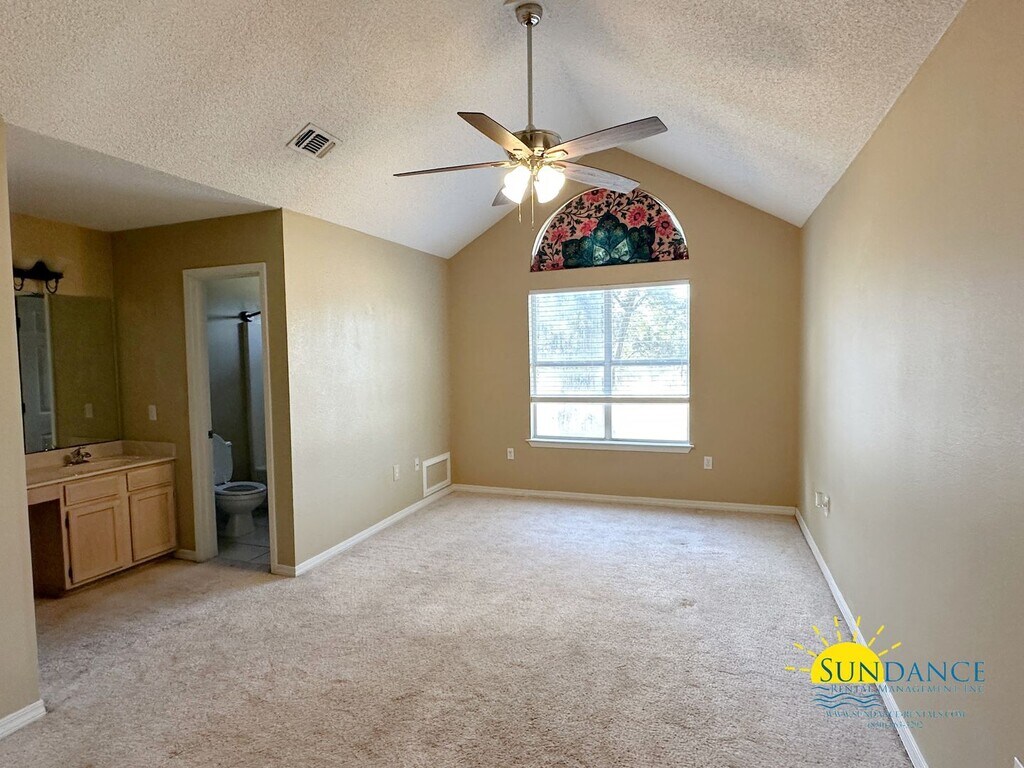 Located in Hidden Bay Village community in Navarre, this well-maintained two-story townhome offers 3 bedrooms, 2.5 bathrooms, a 1-car garage, and additional driveway parking. Enjoy access to two community pools and beach access—perfect for embracing the coastal lifestyle. Inside, the split-bedroom floor plan provides added privacy, while the spacious living and dining room combination features a blend of plush carpeting and tile flooring for both comfort and durability. The kitchen is beautifully appointed with walk-in pantry, appliances, granite countertops and a breakfast bar, ideal for casual dining or entertaining guests. The primary suite includes a tub/shower combo, and two additional generously sized bedrooms share a full bathroom. A convenient half bath is located downstairs for guests, and the upstairs laundry closet comes equipped with a washer and dryer (AS-IS). Located just minutes from Navarre Beach, this home offers the perfect blend of comfort, convenience, and resort-style amenities. Yard maintained by HOA & rules and regulations apply.. Pets are accepted with $250 per pet non-refundable pet fee + $50 admin fee (Subject to Owner Approval) No smoking is permitted. In addition to the rental amount, all Sundance Rental Management residents are enrolled in the Resident Benefits Package (RBP) for $25.00/month which includes liability insurance, credit building to help boost the resident’s credit score with timely rent payments, and much more! The benefits can be found on our website under Tenant FAQ.