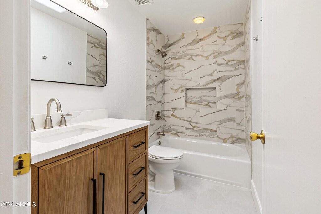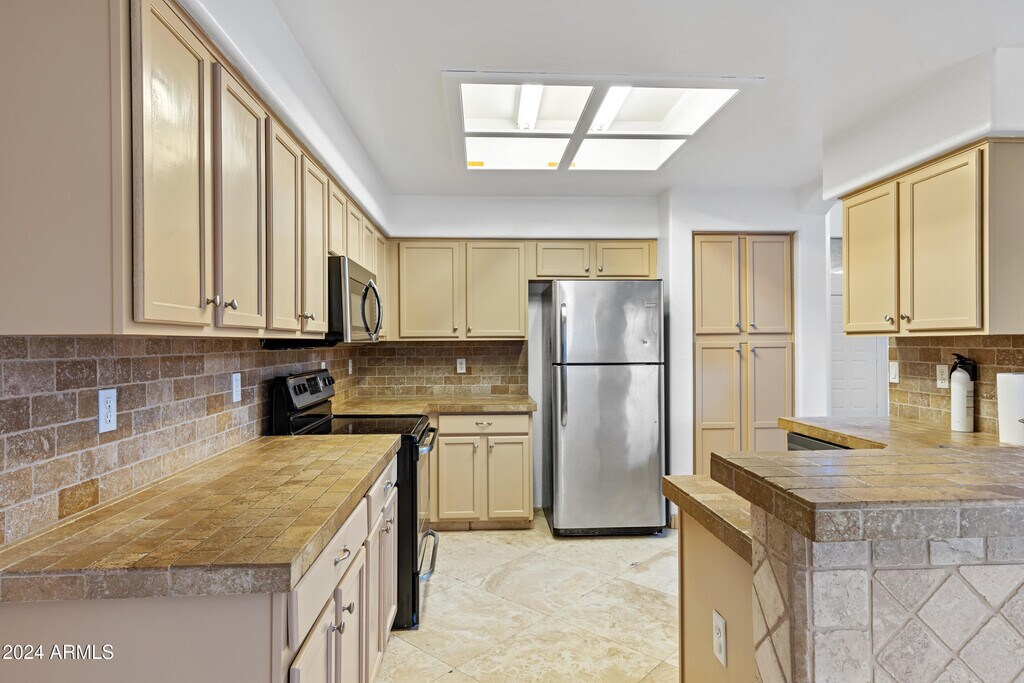 NO PETS! Located in the East Valley,this charming 3-bedroom,2.5-bathroom residence is nestled within a gated subdivision offering a community pool and expansive green spaces. The home features an inviting open floor plan,complemented by tiled counters,a stylish backsplash,and modern black appliances.