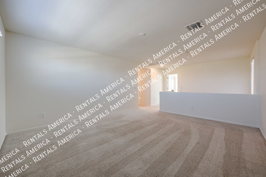 This stunning two-story home features an open concept floor plan! Great for entertaining and includes a spacious foyer and 9-ft. ceilings. A huge great room opens to a kitchen and dining space and offers access to an extended covered back patio. The kitchen includes 42-in. upper cabinets, granite countertops, and a single basin undermount sink. Stainless steel appliances included. Mother-in-law suite downstairs with full bathroom. Upstairs you will find a large loft and 2 other bedrooms, as well as the master suite. Master suite comes with a walk-in closet. Master bath has shower and tub and dual-sink vanity. Spacious laundry room upstairs with Washer and Dryer included. This community offers several playgrounds and walking trails. Close to A-rated schools, State Farm Stadium, Westgate, Tanger Mall, Commuter Highways and so much more! Available NOW!!! One Time Admin Fee: $300, Pet Deposit: $300/pet (if applicable), Service Fee: 2%. $39/month Resident Benefits Package, Helping Heroes Discount Available! Carpet Cats Allowed Ceramic Tile Disposal Dogs Allowed Dryer Garage Pets Allowed Washer