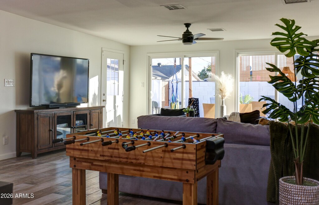 Wonderful 3 bed furnished home in Scottsdale! Ready to move in just bring your suitcase! Fully equipped with everything you'll need. Backyard was made for entertaining! Play poker,foosball,or ping pong,or relax by the unheated sparkling pool with lounge chairs. Enjoy your friends and family with evening barbecues. Just 5 minutes from Old Town Scottsdale,eateries,shopping,and 10 minutes from the airport,Tempe,ASU,and Spring Training games. Your pet will enjoy the outdoor spaces as well!