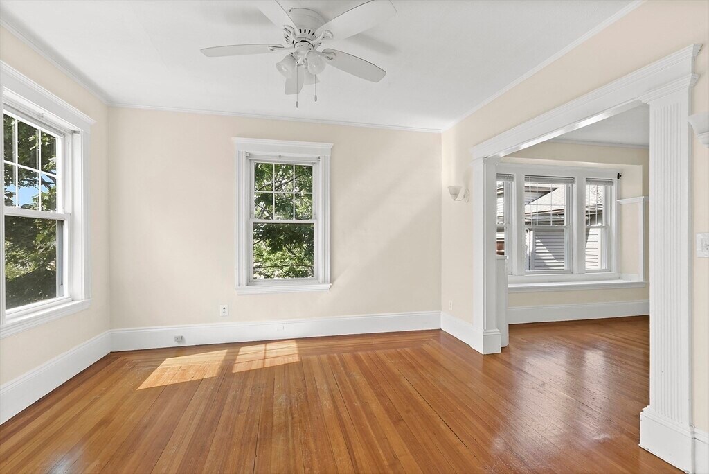 Sun-filled top-floor home set up and back off of Fellsway offering the perfect blend of suburban comfort and city convenience. Enter through your own private entrance and you're immediately struck by high ceilings,an updated eat-in kitchen and bath,recessed lighting and hardwood floors. With four exposures,the home features separate living and dining areas,a large pantry,sunroom,and three bedrooms on one level. Free basement laundry and two private parking spaces included. Conveniently located near Wellington Station (Orange Line),Assembly Row,a plethora of gyms and shopping options,5 grocery stores,highways,Middlesex Fells Reservation,and an easy commute to Harvard,Tufts,MIT,and Downtown Boston. MLS# 73468030