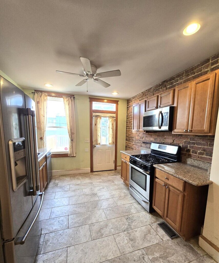 Welcome to this charming 3- bedroom, 2-bathroom home that boasts a separate office/den. This property has a patio and large deck, perfect for outdoor entertaining. Nestled in the desirable Brewers Hill neighborhood, this home offers a unique blend of city living with a community feel. The covered front porch adds a touch of classic charm, inviting you to sit and enjoy the neighborhood views. Inside, you'll find original hardwood floors and exposed brick that add warmth and character to the space. The kitchen is updated with stainless steel appliances and granite countertops. The finished basement has a full bath and plenty of storage. The large backyard provides ample space for gardening, play, or relaxation. This home is a perfect blend of historic charm and modern convenience, waiting for you to make it your own. Pet Policy: nonrefundable pet fee of $200 for a cat & $300 for a dog. Rental Insurance required. Available NOW. $2,600 Monthly + Utilities.