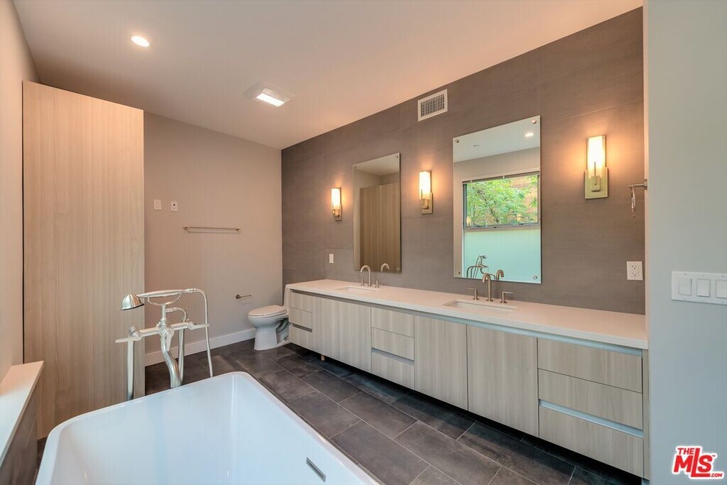 Newer modern townhome-style front unit in the heart of West Hollywood, offering the privacy and comfort of a true home. This stunning 2-bedroom, 2.5-bath residence features secure gated entry, plus a second private gated 2-car garage with direct access to the unit.The first floor offers a spacious and open living and dining area with beautiful indoor/outdoor flow to a private front patioperfect for relaxing or entertaining. The high-quality kitchen is appointed with European appliances and sleek Italian cabinetry, and a stylish powder room completes the main level.Upstairs, you'll find two generous bedroom suites with custom closets and designer bathrooms featuring oversized showers, seamless glass enclosures, double sinks, and porcelain tile finishes. A large private rooftop deck provides an additional outdoor retreat, ideal for entertaining and enjoying the West Hollywood lifestyle.Additional features include recessed lighting throughout, wood flooring, in-unit laundry, and extra storage. The approximately 300 sq. ft. garage is finished with epoxy flooring and equipped with internet, TV connection, and folding doorscreating a flexible space with endless possibilities.Located moments from the best of West Hollywood, including top restaurants, high-end designer boutiques, the Pacific Design Center, The Grove, and premier shopping and dining destinations. MLS ID 26819917