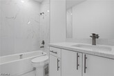 AVAILABLE NOW! QUICK APPROVAL! Be the first to live in this stunning brand new 3 bedroom,2 bath FENCED BACKYARD with a DIVIDER between both units,providing each residence with its own private outdoor space. Covered lanai,a 1 car garage with additional parking space in the long driveway that can fit two additional cars,designed with modern finishes and comfortable living in mind. This never lived in residence features a bright open concept layout with stylish luxury vinyl flooring,recessed lighting,and large windows that fill the space with natural light. The beautiful kitchen is the heart of the home,showcasing sleek quartz countertops,modern cabinetry,stainless steel appliances,and a spacious breakfast bar perfect for casual dining or entertaining guests. The spacious bedrooms offer ample closet space,while the bathrooms feature elegant vanities and beautifully tiled walk in showers,creating a clean and contemporary feel throughout the home. Enjoy the convenience of central A/C,in unit washer and dryer,and a covered lanai with ceiling fan and lighting,ideal for relaxing outdoors. The property also offers generous backyard space for added comfort and privacy. A perfect combination of modern design,comfort,and brand new construction. Move in ready and waiting for its very first residents.