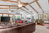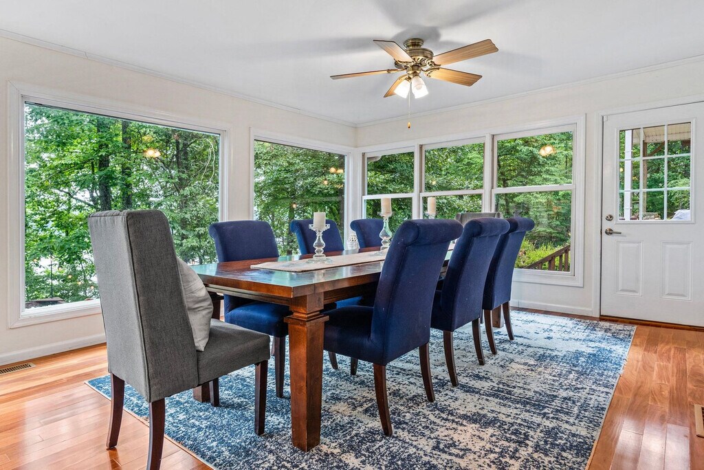Feel at home in this spacious house perfect for family fun, offering plenty of room to spread out and enjoy. This home comfortably sleeps 15 and features an open-concept living room, kitchen, and dining room. The open-concept kitchen is fully equipped with all basic necessities. Enjoy amenities such as a game console, barbecue grill, boat slip, fire pit, sun loungers, and kayak. There is a brand new hot tub, sitting area, wine glasses, and comfortable outdoor chairs. For entertainment, there are indoor games, fast Wi-Fi for streaming videos, and a four-season porch with dining for 10 and a great view of Lake Hartwell. The double-decker dock is perfect for tanning and relaxing, with deep water off the end for fishing and swimming. Linens, towels, and complimentary toiletries and soaps are provided. Pets are welcome with a fee of $125. Advance notice is required to secure authorization for bringing a pet, and you are required to clean up after your pet. This home is situated in a quiet, safe community of mostly weekenders with minimal traffic. Nearby attractions include Domino's Pizza, Peet's Coffee & Tea, Currahee Military Museum, Currahee Club Gatehouse, Osaka Express Japanese Restaurant, M & J Home Cooking, Quincy's of Toccoa, Henderson Falls Park, and Los Amigos Mexican Restaurant. It is close to Toccoa, where you can visit the Currahee Military Museum. There is also a wonderful golf course less than 15 minutes away. There is room for 4 cars in the driveway. The main floor has 2 bedrooms and a bath. Downstairs, there are two bedrooms each with twin bunkbeds, one bedroom with a queen bed, and another with a full-size bed. A cot bed is available in the closet. Registration Number: 5762034 [SI]