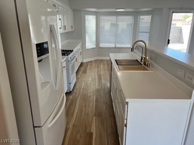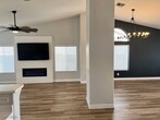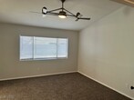 Beautifully remodeled single story home with 3 bedrooms, den, open living and family rooms, vaulted ceilings and 3 car garage in quiet Henderson neighborhood! Spacious backyard. Low maintenance yards. Great natural light! Electric fireplace in family room offers a hint of modern warmth and elegance. Large flat screen TV already installed. Brand new carpet in primary suite and guest bedroom, hard surface flooring everywhere else. Modern lighting and ceiling fans throughout. Freshly painted and ready for move in!
