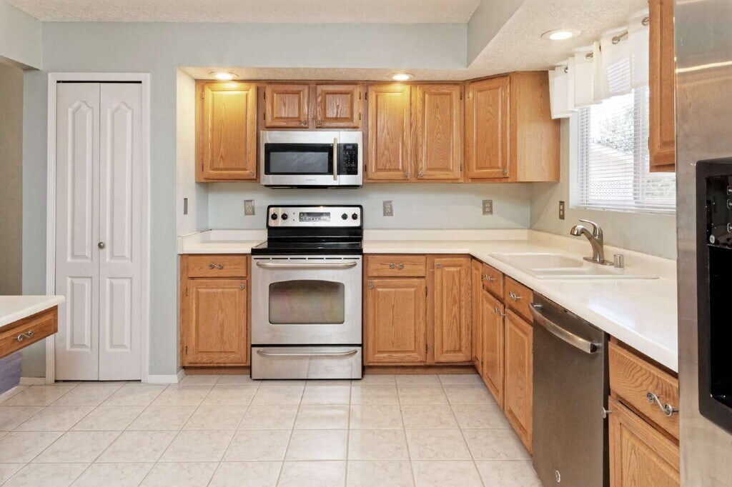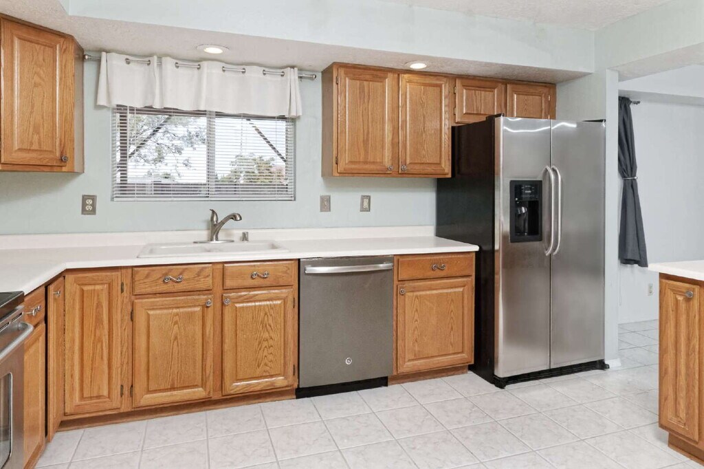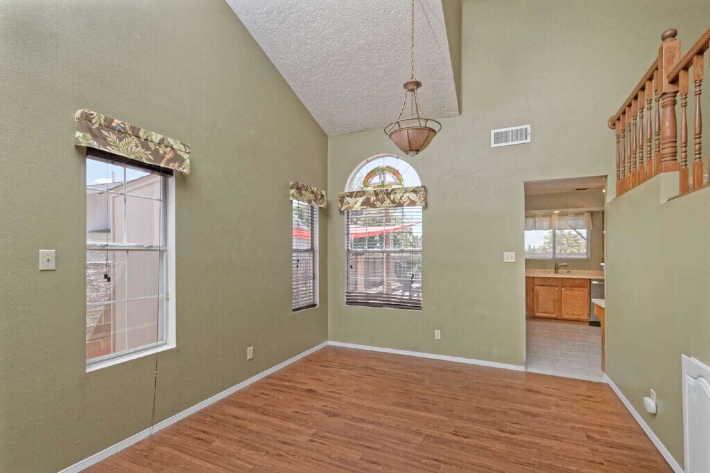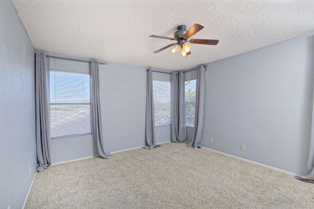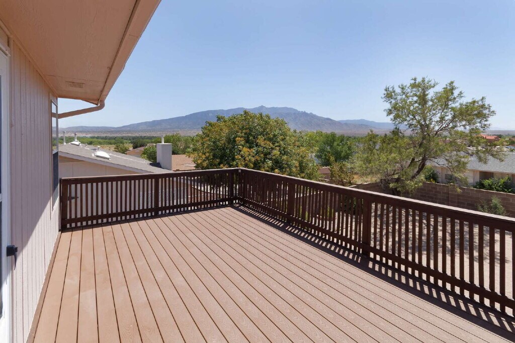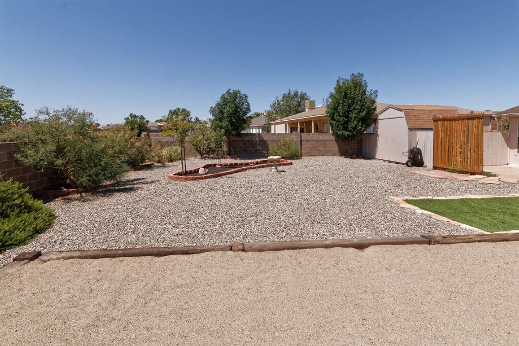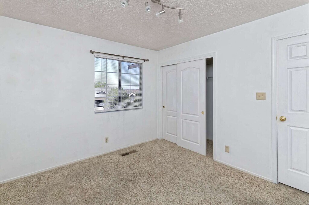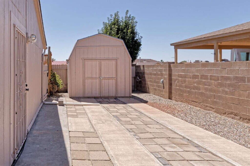 Lovely 2 story home in River's Edge 3 part of Rio Rancho. Wonderful back yard with view deck accessible from ground or Primary BR, covered patio, RV parking pad and a storage shed. Easy care landscaping with some plants and trees. Evaporative cooling. All bedrooms upstairs. Brand new carpet. Stainless steel appliances in kitchen, utility sink and workbench in garage. Security camera and phone app supplied. Washer/dryer hookups only. Cats possible. Resident pays utilities. Small added fee for Resident Benefits Program. No in-person showings. Watch video walk-through at our web site (MSProp dot com) and do a drive by. A video link is also available on Zillow under Facts & Features, then Show More. Available 11/1/25. Utilize $0 Security Deposit Replacement Option or $2692 up front. See program description on our web site. A list of potential fees which could come up is on the listing on our web site. Questions? Go to the web site and click on the RESIDENTS tab. Almost every question is answered there or on the Application page. (Or call us.) Be sure to review the listing on our web site. Other sites may not have complete and accurate info. Apply online at our web site only - MSProp dot com. $50/adult app fee. M&S Property Services, LLC. (land line).