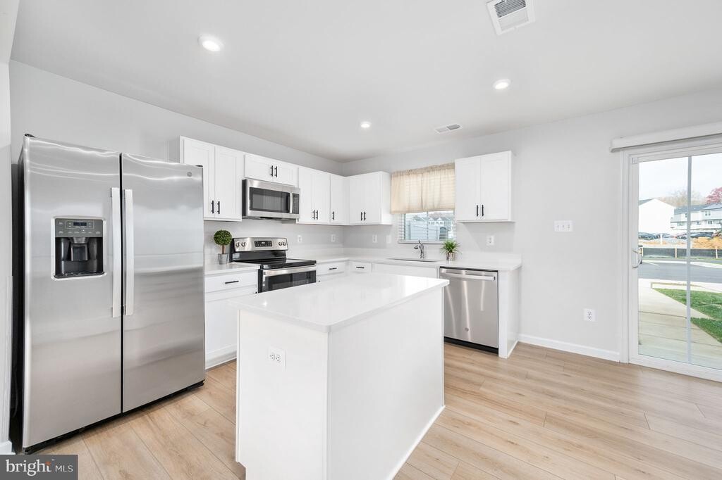 Bright End-Unit Townhome. Must-see end-unit townhome. This 3 bed, 2.5 bath still feels new and features a bright and open floor plan. It features fresh modern paint throughout, blinds, and the builder upgrades. Quartz countertops in the kitchen and luxury vinyl plank flooring entirely on the main level. GE stainless steel appliances with a kitchen island. It includes smart features such as a smart thermostat and an energy efficient rating which means lower utility bills. Upstairs, you’ll love the convenience of having the laundry room on the bedroom level and a walk-in closet in the owner's bedroom. This low maintenance townhome comes packed with parking with an attached two car parking pad, rear parking, and street parking in the front. Walk right out the back of the townhome and experience the common area which includes a pickle ballcourt, community garden, tot lot, walking trails, and a beautiful view of the sunsets. Take a short walk to the community pool and pool house this summer which features a community grilling area. Just a short drive in the community takes you to the Pendleton Golf Course which offers free golf to its residents, or you can upgrade your membership for additional playing time. This townhome offers the perfect blend of style and function.