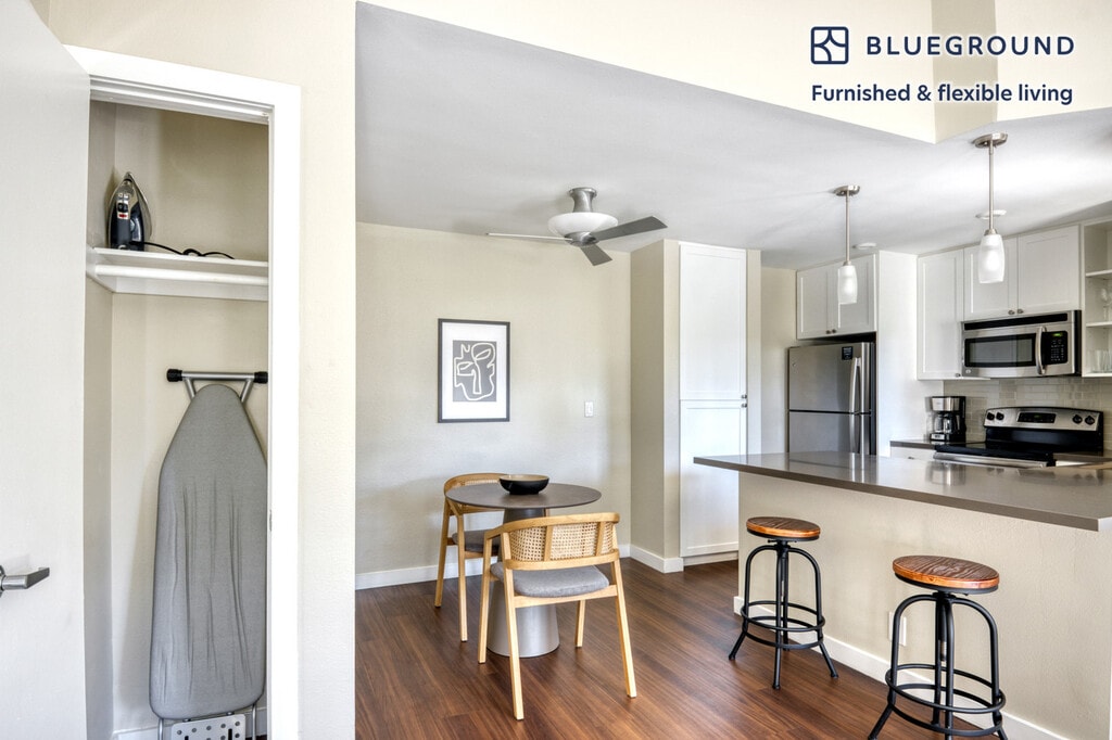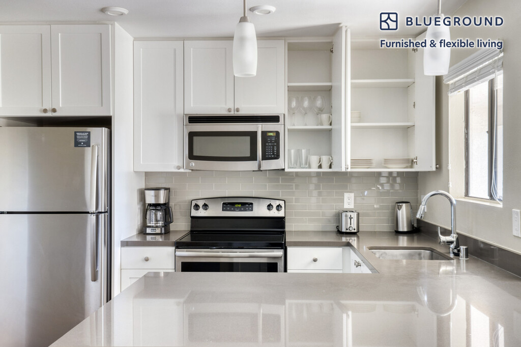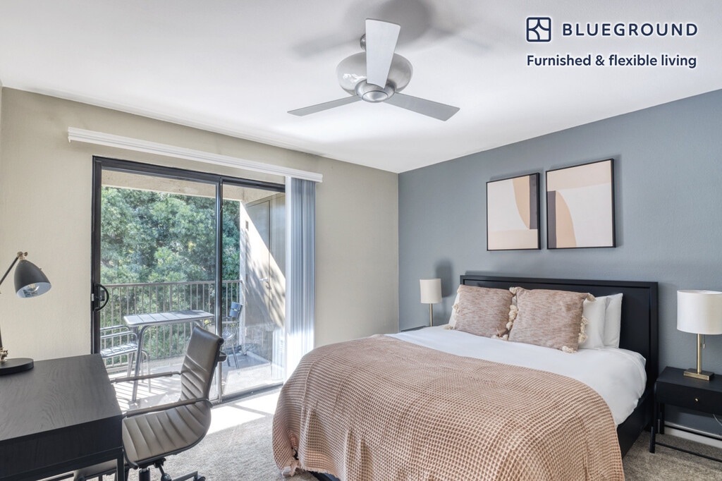 Show up and start living from day one in San Diego with this cozy one bedroom Blueground apartment. You’ll love coming home to this thoughtfully furnished, beautifully designed, and fully equipped University City home. (ID #SAN8) The advertised rate of $2,980/month is the lowest available price, based on a 2 month(s) and 14 day(s) stay with a move-in date of December 15, 2025. If you’re looking for a 1-year stay, the rate is $3,240/month. Rates vary depending on the duration of stay, season, and other parameters. For exact pricing and additional pricing components, please visit our website and enter your desired move-in and move-out dates. The rate is applicable when billed upfront; it can be higher if billed in multiple payments. Brokers are welcome to reach out. Were you looking for an unfurnished lease? Try Blueground instead and upgrade from unfurnished to furnished living: - Furnished at rates comparable to unfurnished - No setup or furniture costs - save thousands - Move-in ready - save time, just bring your suitcase Designed with you in mind As with any Blueground apartment, you’ll find a thoughtfully designed space complete with beautiful furniture and a fully equipped kitchen in this one bedroom property. And, thanks to our superior quality mattresses, luxury linens, and towels, you can relax knowing you’ll always feel comfortably at home. When you’re ready for some fun, you can take in the San Diego vibes or bring the entertainment to you with the premium wireless speaker or smart TV. This apartment also offers in-apartment laundry. Sleeping arrangements Queen Bed, 63in/160cm Amenities Building amenities unique to this one bedroom apartment include an on-site: - BBQ Area - Dryer - Swimming pool - Washing machine - Lounge - Parking - Pets allowed Arrival and ongoing support The entire apartment is yours to enjoy! Throughout your stay, you’ll have access to our Client Experience team through the Blueground App. You can schedule additional cleanings, submit maintenance requests, and view our neighborhood recommendations with just a few taps. We’ll share all details upon confirmation of your stay. Ideally Located This furnished apartment is located in University City, a bustling area right next door to the University of California, San Diego. Popular with students and young professionals alike, University City is a great introduction to the city. The dining scene includes everything from cheap eats and college bars to high-end regional Mexican fare, and there are several large grocery stores for anyone who prefers to cook for themselves. The highlight of University City's shopping scene is the outdoor Westfield UTC mall, which has a variety of stores, a food court, and even its own ice rink. On the weekend, head to Rose Canyon Open Space Park for some gorgeous hiking or jogging. Other things to note Building amenities may have an extra cost. This Blueground apartment has flexible lease options, allowing you to book it for one month, a year, or more. Pets are welcome, though weight limits and breed restrictions apply and may incur fees. Parking is offered based on availability and is subject to a fee. Please keep in mind that this is a walk up building. We take great pride in ensuring every photo displayed is shot in our own units with our actual furnishings. That said, we regularly refresh our decor and furniture arrangement, which may differ from what’s pictured. Also note - This apartment is located in a quiet and peaceful area - The apartment's fireplace is for decorative purposes only - There are stairs leading up to the entrance of this apartment, but no elevator [SI]