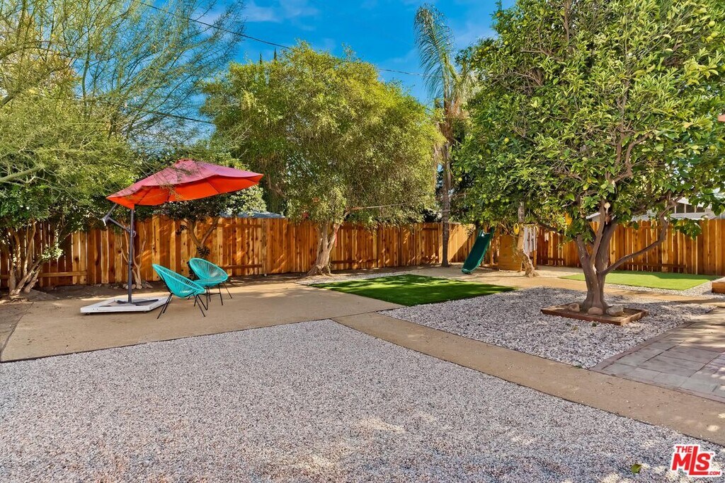 Welcome to The Encino Bungalow, a charming hidden gem in Lake Balboa. This bright 2-bedroom, 1-bath home offers 900 sq ft of inviting living space, complete with wood floors throughout, central air and heating, and a spacious kitchen featuring a stainless steel refrigerator, and a vintage Wedgewood gas stove. French doors open to a private, fully fenced backyard retreat with a covered dining area, multiple lounging spaces, a kids' play structure, low-maintenance turf, fruit trees, and raised planters. The attached garage, equipped with air conditioning, provides a flexible space ideal for a home office, gym, or bonus living area. A new washer and dryer, along with a new roof, add peace of mind. This home is ideally located near Lake Balboa Park, top-rated schools, shopping, and dining. MLS# 26641097