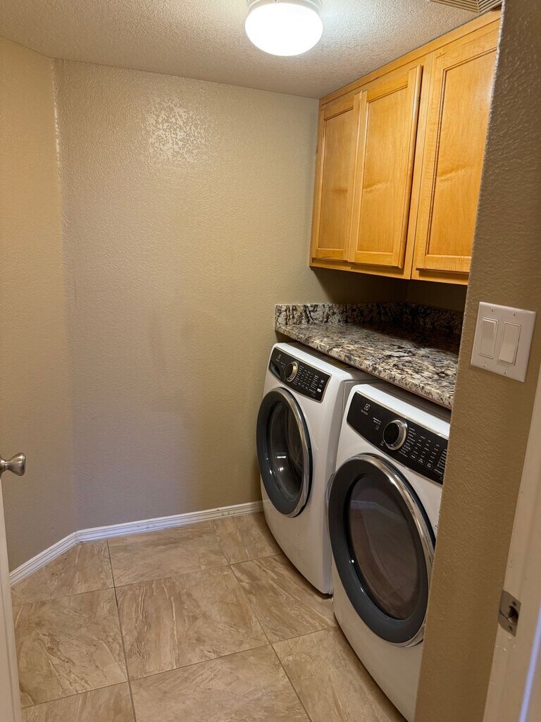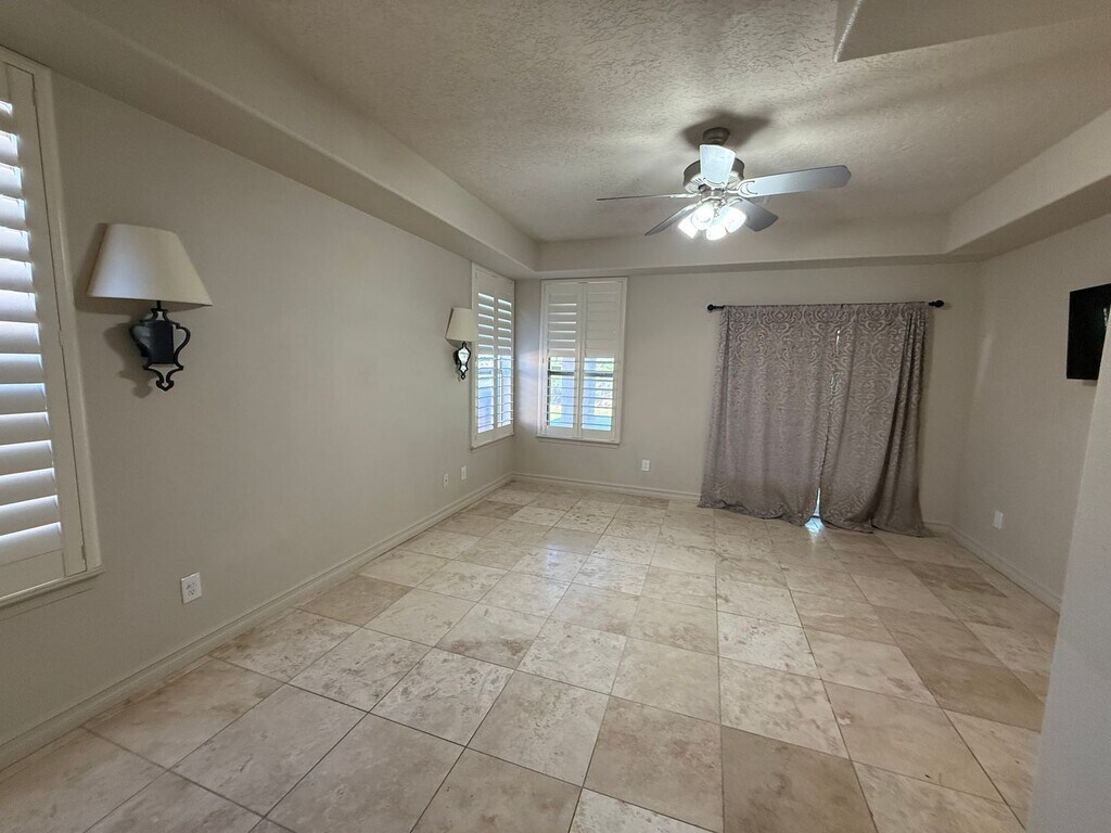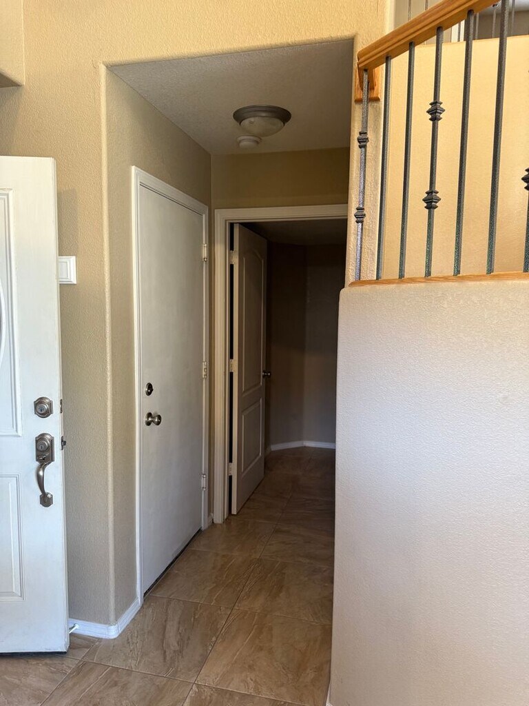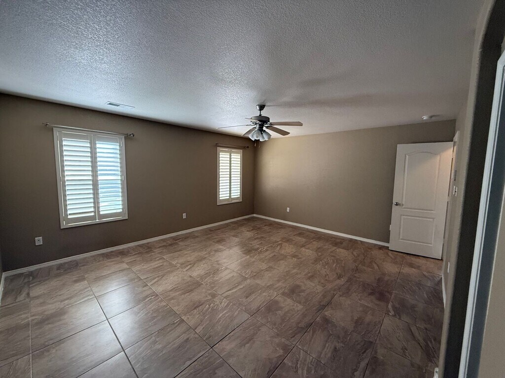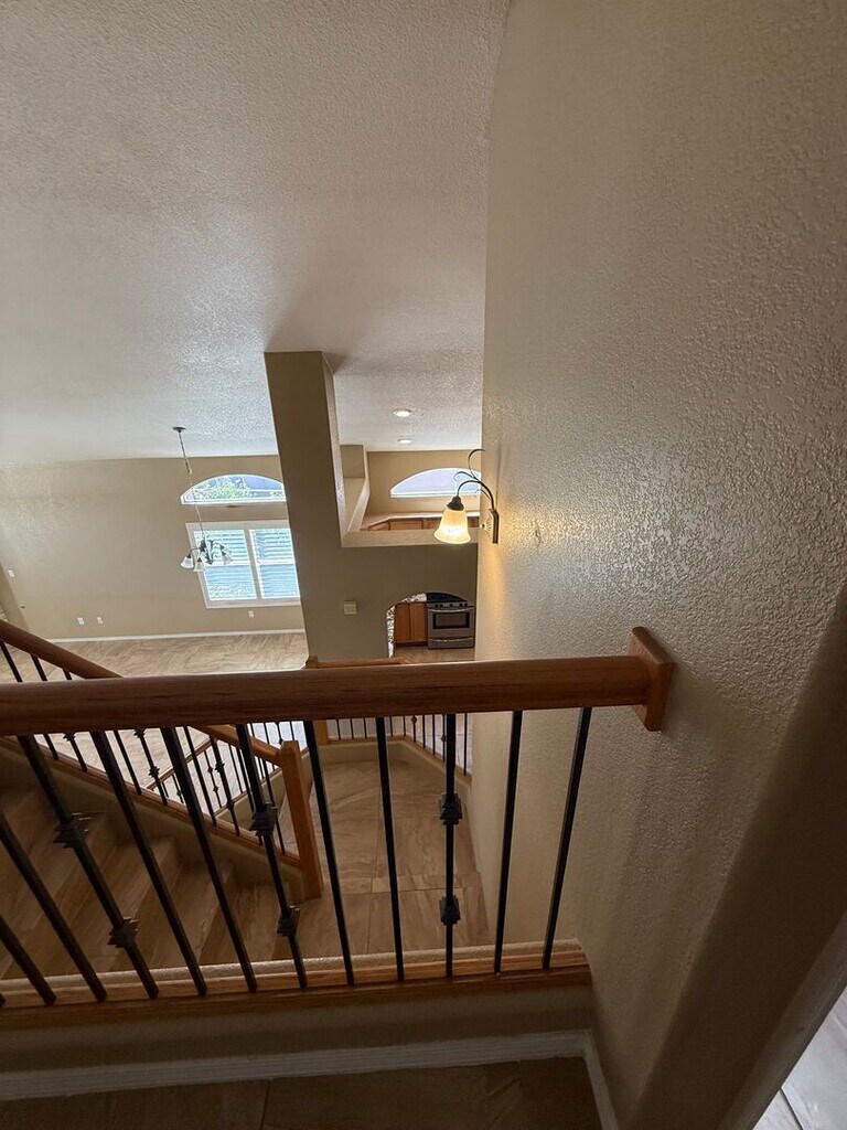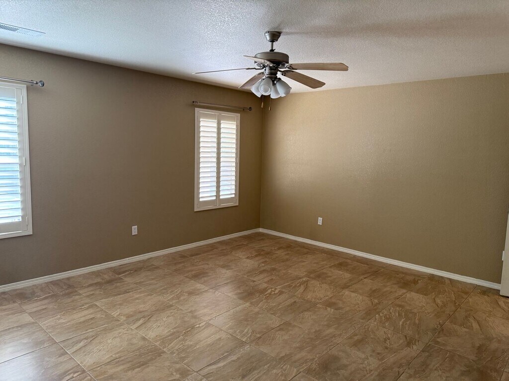 This property featuring 2,078 sq ft with three bedrooms, 2.5 bathrooms, and a spacious loft. The home boasts tile flooring throughout. The kitchen has been completely updated with granite countertops, stainless steel appliances, a custom backsplash, a refrigerator, and a pantry. There is a separate formal dining area, and the living room offers a custom gas fireplace and raised ceilings. The primary suite is located on the first floor and includes a private bath with a large vanity, a garden tub, a walk-in shower, and a walk-in closet. A beautiful wrought iron staircase leads to the loft area and two guest bedrooms. The private backyard features a covered patio and artificial turf. Additionally, a park is conveniently located directly across the street.