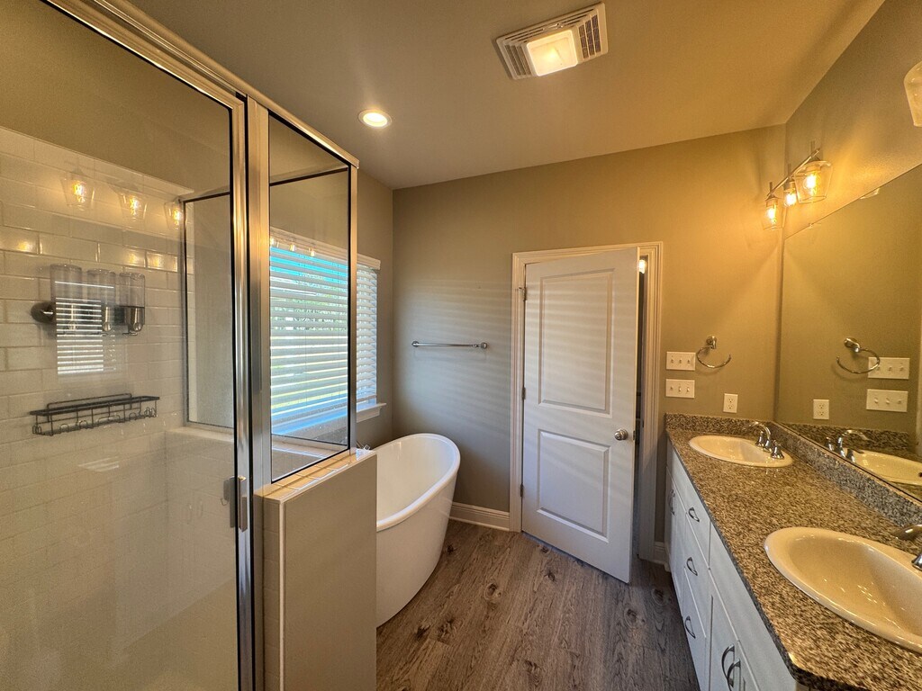 MOVE IN SPECIAL! 1/2 OFF ONE MONTHS RENT!! Immaculate 3 BR/2BA home for lease – Move-In Ready. Experience comfort and style in this charmer featuring vinyl plank flooring throughout — no carpet! The open-concept living area is anchored by a cozy fireplace with a gas insert, creating a warm and inviting atmosphere. The bright kitchen boasts a gas cooktop, included refrigerator, and ample counter space, perfect for everyday living or entertaining. The primary suite offers a peaceful retreat with a beautiful en-suite bath, complete with a soaker tub, separate tile shower, and dual vanities. A separate utility room adds extra convenience. Enjoy easy living with yard maintenance included, and move right in — this home is ready for immediate occupancy! Lawncare included. $75 application per each person 18+ in home. Income requirement is 2 1/2x the rent, credit & background check required along with income/rental history verification. Pets considered, 2 pet max for approved pets. Restrictions apply. Will consider 6 month lease for approved tenant.