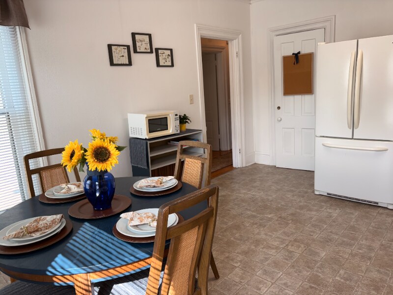 Property Id: 2145004 Rent a fully furished apartment in a historic home in the heart of Beloit's Historic College District. Minutes' walk to downtown, 1 minute from Beloit College. Fully Equipped Large Eat-In Kitchen Cook with full-size appliances, including refrigerator, gas stove, microwave, and toaster. The dining table is set for four, framed by warm cabinetry, decorative accents, and sunlit windows. Two large, comfortable, private bedrooms each with bed with nightstand, dresser, closet, sitting area, and smart TV, as well as additional furniture unique to each bedroom - sofa loveseat, computer desk, and decorative lamps. Full Bathroom - Full tub, shower, and storage. Perks • Flexible lease options • Utilities included • High Speed Internet • Smart TV • Starter Kitchen Set (pans, utensils, place settings for 4) • Bed & Bath Linens (sheets, quilt, pillows, towels, x2) • Private Reserved Parking on-site Contact Info Call or text: , or