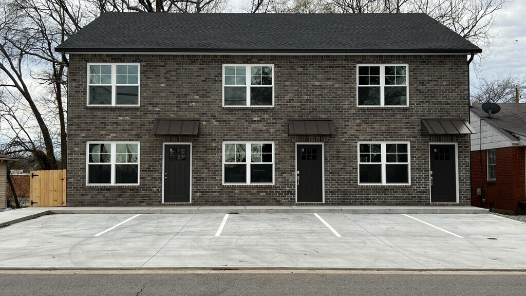 Unit A features two upstairs master bedrooms, each with its own full bathroom, as well as an upstairs laundry room equipped with washer and dryer connections. The main level features a fully furnished kitchen equipped with a dishwasher, oven, and refrigerator, as well as a convenient half bath. This unit has lots of closet storage space.This unit also includes a step-out back deck and two designated parking spots located directly in front of the building. 724 Commerce St, Clarksville, TN — 2 Bed / 2.5 Bath RentalThis 2-bedroom, 2.5-bathroom rental unit is situated within 1/2 mile of APSU and conveniently located in the center of Clarksville. The upstairs level includes two master bedrooms and a laundry room.The main level features a fully equipped kitchen, complete with a dishwasher, oven, and refrigerator. There is also a step-out deck accessible from the back door.In front of the building, two parking spots are available for renters.