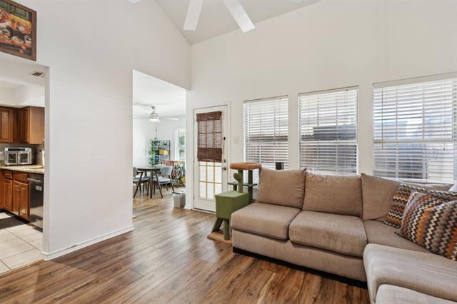 NEW AC inside, replaced June 2025!!! Looking for a townhome centrally located in the DFW metroplex? Look no further! This wonderful 2 bedroom townhome has a bedroom and full bathroom on each floor making it great for roommates or if you need a bedroom on the first floor for family. The primary suite is all that is on the second floor, giving you have complete privacy. The large living room and vaulted ceilings make the TH feel even bigger than it is. The kitchen looks out over the living room and breakfast room and has a bar with room for a kitchen or dining table. The front of the home has a gated porch and the back has a large patio with room for a dining set and storage. The location is fantastic! Right across the cul-de-sac is a park and playground and you're only one block from the community pool. You can be at DFW in 15 min. You're also situated right between Lake Lewisville and Grapevine Lake as well as all the shopping nearby.