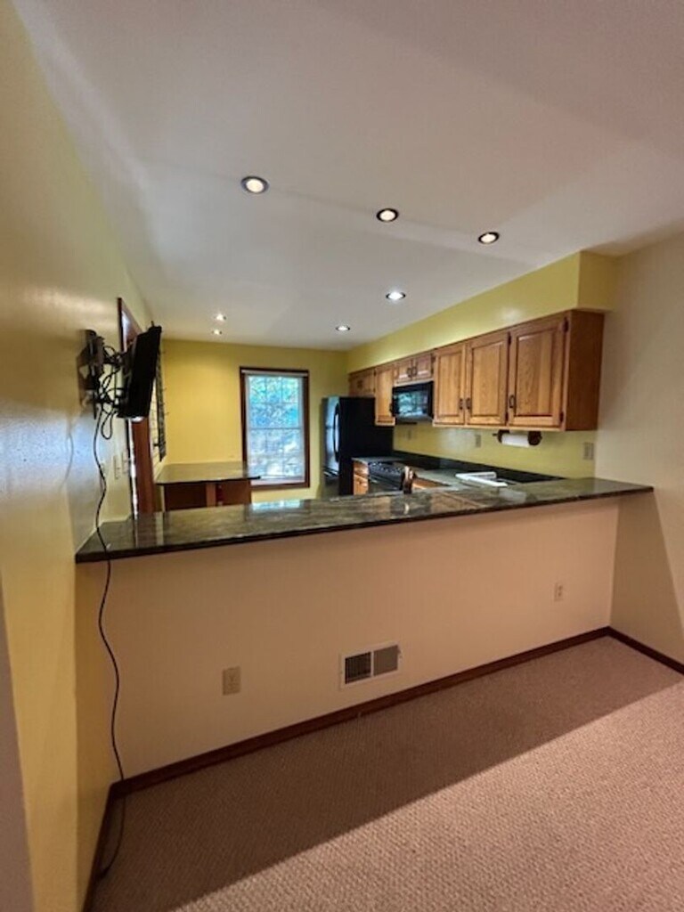This 2 bedroom, 2 bath townhouse is one you do not want to miss. It is an end unit with a one car garage. The main floor has a kitchen, living room with vaulted ceiling, laundry, and bathroom. The second floor has a loft area, 2 bedrooms and a full bathroom. The back porch is covered, with windows and doors to allow air to circulate in the summer. The basement is also fully finished. The rent is $1625/month and includes water, sewer, trash, lawn care, leaf removal. Residents are responsible for electric, cable, internet, snow removal of driveway and sidewalk. Heat source is electric heat pump and there is central AC. Available 11/17/2025.