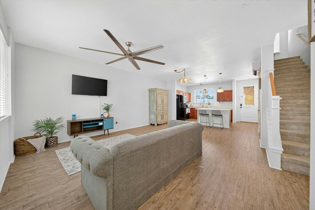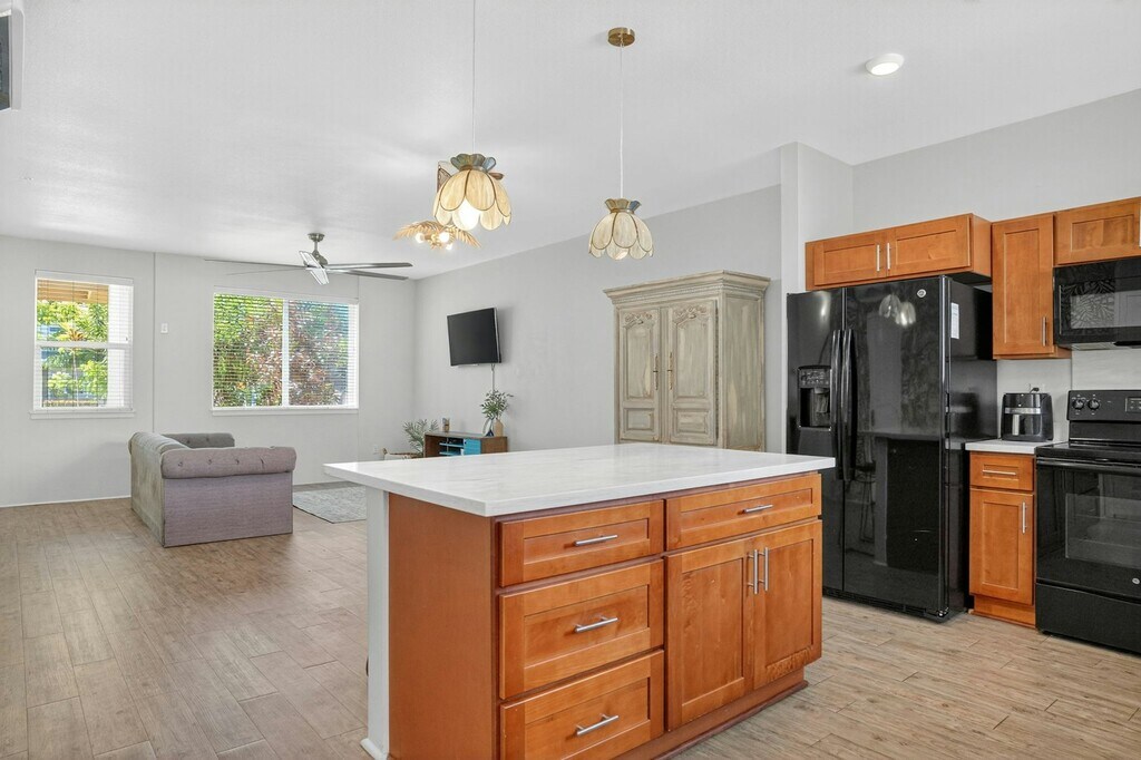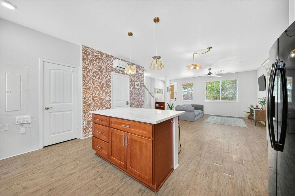 Welcome home to Kahiku at Mehana in Kapolei! This beautifully upgraded 2-bedroom, 2.5-bath townhome features an open floor plan that flows seamlessly to a private, landscaped yardperfect for relaxing or hosting BBQs. Enjoy modern touches throughout, including luxury vinyl plank flooring, split A/C units, and a spacious primary suite with dual vanities and a walk-in closet. The home also includes a detached garage plus an additional open parking stall for added convenience. Kahiku at Mehana is a pet-friendly community offering access to exclusive amenities such as a pool, BBQ area, clubhouse, jogging paths, and multiple parks. Conveniently located near freeway access, beaches, and the shopping, dining, and entertainment of Kapolei and Ko Olina, this townhome combines comfort, style, and the best of island living.