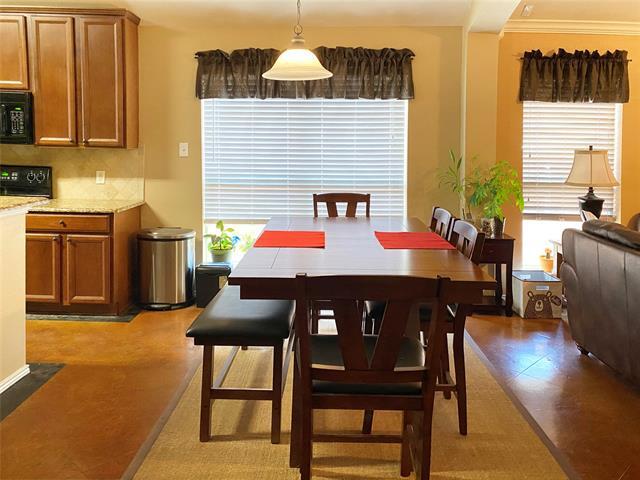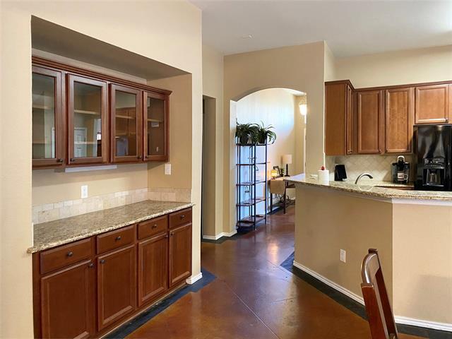 Gorgeours spacious 3-2-2+Study or formal dining. Open floor plan custom home design: brick stone exterior, granite counters, tumbled marble backsplash, stained concrete floor, arched entry, crown moulding, designer paint colors, 42 cherry cabinetry, upgraded fixture and hardware. Quiet backyard with covered patio. Located in Creekwood community with FREE access to pool, kiddie pool, park, playground, hike and bike trails. Walking distance to schools.