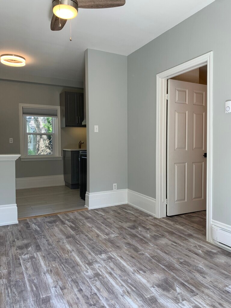 A tiny apartment that's big on style in the historic Woodfield area. (View video online: youtu.be/L9BCey_fwVs) Open the stylish, brand new, front door into this completely renovated one bedroom apartment - packed with thoughtful finishes and all new amenities. High-end Luxury Vinyl plank runs throughout the compact living and bedroom, accenting the beautiful 12" x 24" tile in the kitchen and bath. The small, but well appointed kitchen features brand new stainless appliances, undermount sink lighting and a quartz countertop atop beautiful and modern soft-close cabinets. The white, airy bathroom features a large modern vanity and a brand new extra deep tub, lined with 8" x 24" tile in contrasting Sensation Smoke colour and finished with a pivoting tempered glass tub shield. There's no shortage of storage with two organization units that glide effortless out, and tuck into the wall. The 9-foot high ceilings feature new & modern fixtures including a whisper-quiet ceiling fan in the main living area. Newer Northstar windows on all sides provide an airy summer feel to this beautiful living space. This unit is pre-wired for Start (Telus) Fibre Internet and/or Rogers Cable. Features: - New Appliances (2023) - New Cabinets (2020) - Quartz Countertop (2020) - New Bathroom (2023) - New Windows (2020) - New Exterior Door (2023) - New Floors (2023) - 9' Ceilings - Independent Heating - Independent Water (Included) - Independent Electrical - Pre-wired Fibre Internet - Parking Included (1 spot) - Historic Woodfield area - Close to Transit - Walking Distance to St. Joe's Hospital - Walking Distance to Downtown - Laundry Café 300m away