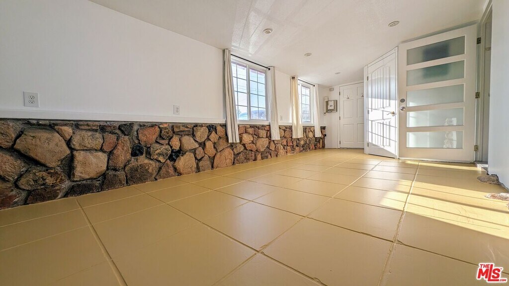 HUGE 1000 sq ft duplex apartment with bay window and wood burning fireplace, New stainless dishwasher, New stainless refrigerator, oven and recirculating hood. New washer, dryer, no carpet (tile throughout), New Split AC system, evaporative cooler also works great if you'd like to save utility costs! Brand new kitchen counters, cabinets and sink. Higher ceilings in the kitchen/living room. There is a second living room space which could make a second bedroom with the use of screens/a curtain. The main bedroom offers a unique rock wall, with a private bathroom that includes a corner shower with multiple jets. The property is equipped with ADT and ring security, new tankless hot water heater, EV charger. You will also benefit from the solar system on the roof, which covers much of the electricity use. Water, trash, gas and 300 mbps internet are included. The rear yard offers parking for 2 cars. You'll be on the west side of Twentynine Palms, walkable to Knott's sky park. A short drive to the Joshua Tree National Park Entrance, MCAGCC Base, and 20 minutes to Yucca Valley. MLS# 26642257