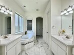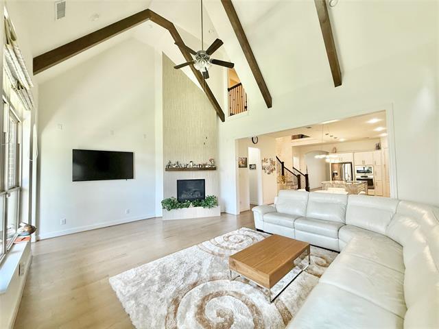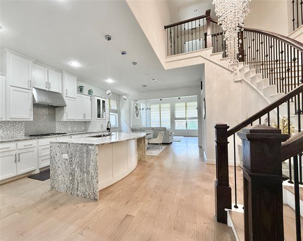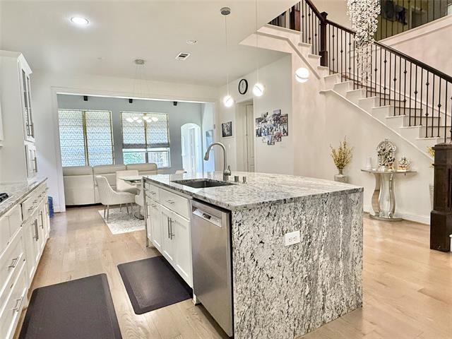 Stunning and Spacious 5-Bedroom, 4.5-Bath Home in The Bridges of Las Colinas – Located in Highly Acclaimed COPPELL ISD! This beautifully maintained home boasts numerous upgrades and a thoughtfully designed open floor plan with soaring ceilings. Elegant hardwood floors, custom window treatments, luxurious light fixtures, and statement chandeliers create a refined atmosphere throughout. The garage features durable epoxy flooring and a 24-gauge steel storage system. Landlord is providing WASHER, DRYER and REFRIGERATOR with the lease. The gourmet kitchen is a chef’s dream, complete with granite countertops, a striking waterfall-edge island, stylish backsplash, walk-in pantry, abundant cabinetry, and stainless steel appliances. A cozy breakfast nook adds to its charm. The main level offers a private study with French glass-paneled doors, a formal dining room, family room, mudroom with built-in cabinetry, a guest suite with its own full bath and stand-up shower, and a luxurious Primary Suite. The primary bath features a jetted garden tub, separate vanities, an extended stand-up shower and high-end, fully customized walk-in closet with premium cabinetry, elegant glass-front display panels, and abundant built-in storage—offering a boutique-style experience with the added convenience of direct access to the laundry room. Upstairs, you'll find three spacious secondary bedrooms, two full bathrooms, a large game room, and a beautifully equipped media room wired for 7.1 surround sound, wet bar area and brand NEW carpet. The covered patio opens to a nicely sized backyard—perfect for outdoor entertaining. Prime Location! Close to top-rated schools, shopping, dining, theaters, airports, and major highways.