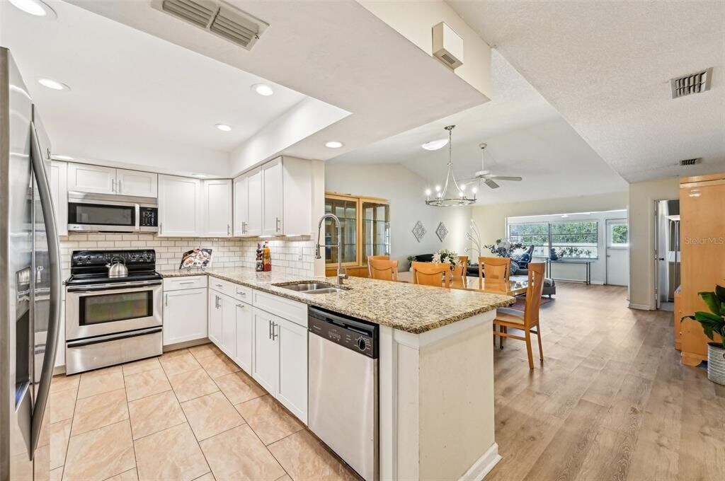 55+ Community located in Sarasota,FL,one of Florida's best cities! Sarasota home to all kinds of cultural events,an International Airport,GORGEOUS BEACHES,fine cuisines,shopping galore,Lowes,medical & dental facilities,pet venues,colleges,vehicle locales,& much more!!! This adorable 2-split bedroom plan with 2 bath & 2-car garage is close to all these areas. Upgraded kitchen with GRANITE,STAINLESS STEEL appliances,decorative backsplash,& undercounter lighting. No carpet & upgraded with crown molding throughout. Large dining & living rooms with volume ceiling making it perfect for entertaining. Enclosed lanai space creating a flex space that can be used as an office,hobby area,& more! Spacious 2 bedrooms with walk-in closets. Updated bathrooms with the Master bath with a bank of drawers on the dual sink vanity making it perfect for convenient storage. Inside laundry room with washer & dryer! Community offers clubhouse & pool! Schedule your PRIVATE showing today! MLS# TB8412967