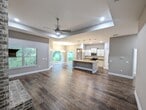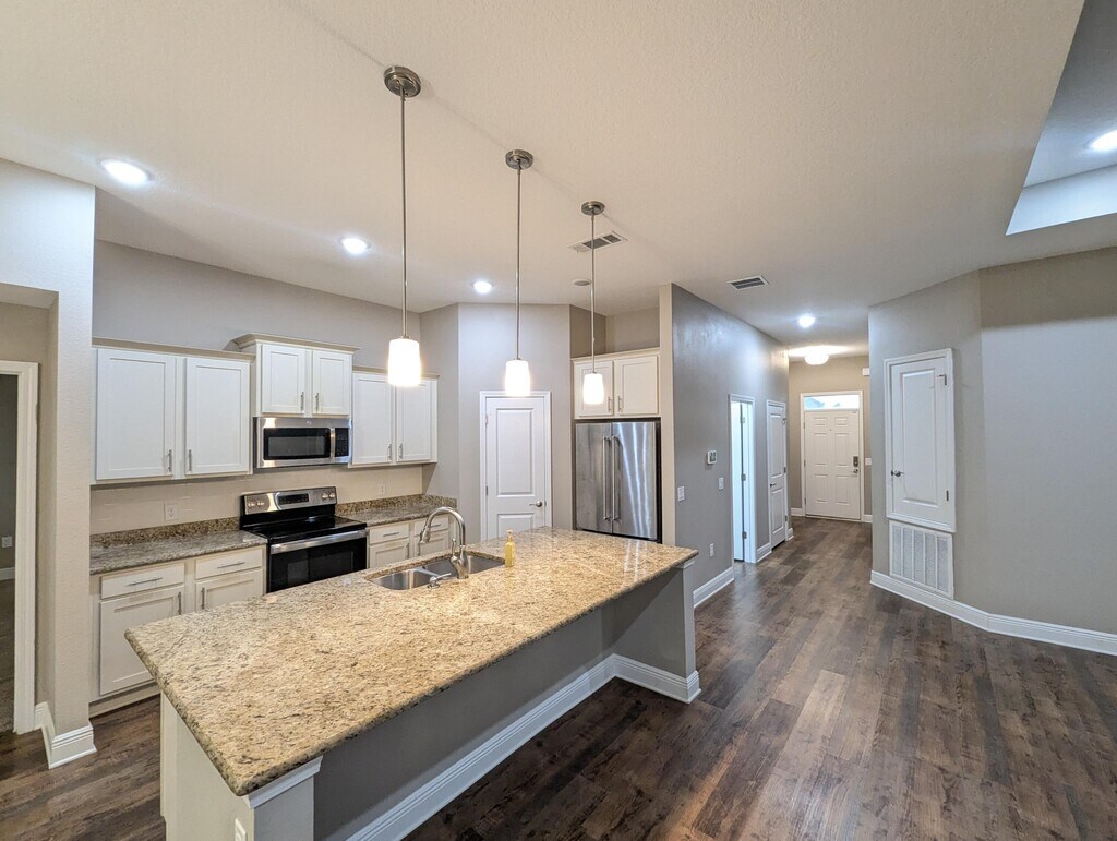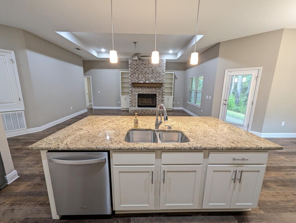 This stunning Craftsman home offers the perfect blend of charm and modern comfort. Step into the spacious open living area, featuring trey ceilings, a decorative fireplace, and extra storage. The kitchen is designed for entertaining, complete with granite countertops, sleek stainless steel appliances (range, microwave, and dishwasher), shaker-style cabinets with dovetail drawers and soft-close guides, a large island, stylish light fixtures, and a walk-in pantry.