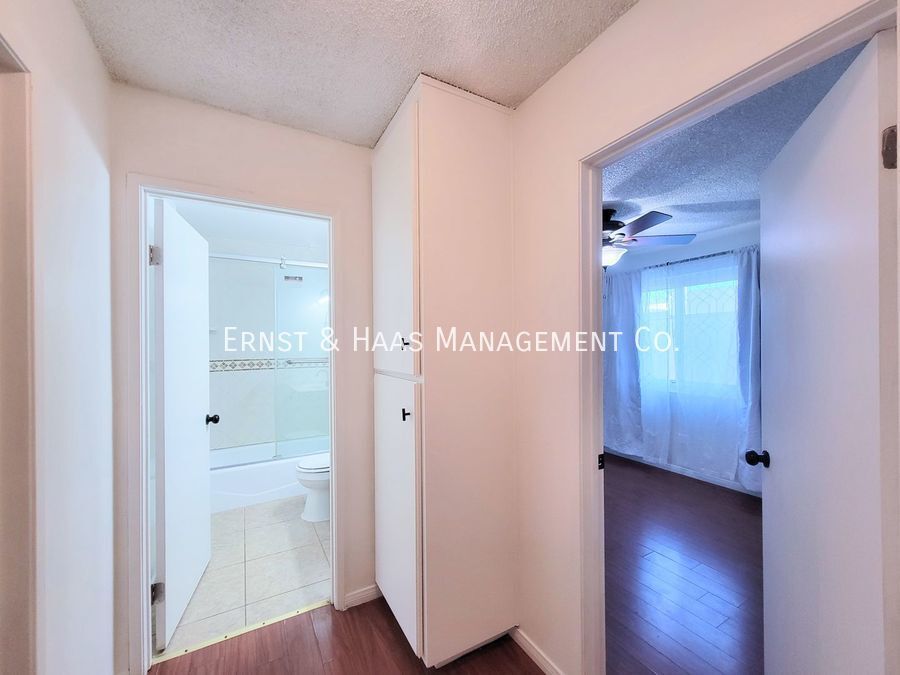 Experience coastal living at its finest in this beautifully remodeled two-story townhome-style condo, nestled within a quaint condominium community just blocks from the ocean. Conveniently located within walking distance to an array of stores, shops, and cafes, Unit 104 offers the perfect blend of comfort and convenience. Step inside to discover a spacious living room adorned with stunning tile flooring, a ceiling fan, recessed lights, and freshly painted walls in a bright white hue. The living room seamlessly flows into the dining area and kitchen, which boasts a full remodel featuring white Shaker cabinets, a tiled backsplash, quartz countertops, pendant and recessed lighting, a farm sink, and a suite of modern appliances including a stove, microwave, oven, and refrigerator. A convenient guest bathroom is also located on the ground level. Upstairs, you'll find two generously sized bedrooms complete with ceiling fans, curtains, and oversized wardrobe closets. These bedrooms share a beautifully remodeled main bathroom, featuring a vanity sink, glass shower doors, and a tiled shower enclosure. Additional amenities include on-site laundry facilities, gated entry for added security, and gated parking for your convenience. Don't miss out on the opportunity to call this coastal oasis home—contact us today! For more information, or to schedule a viewing for this property, please call or text Lorenzo at , or visit us online at