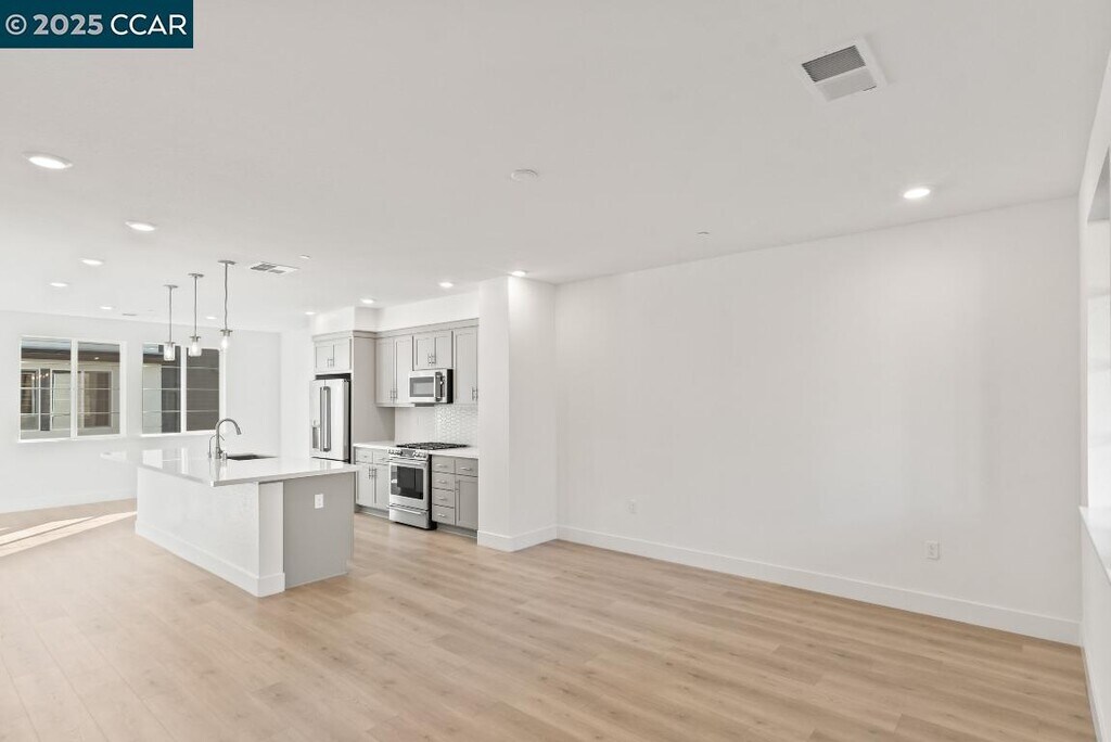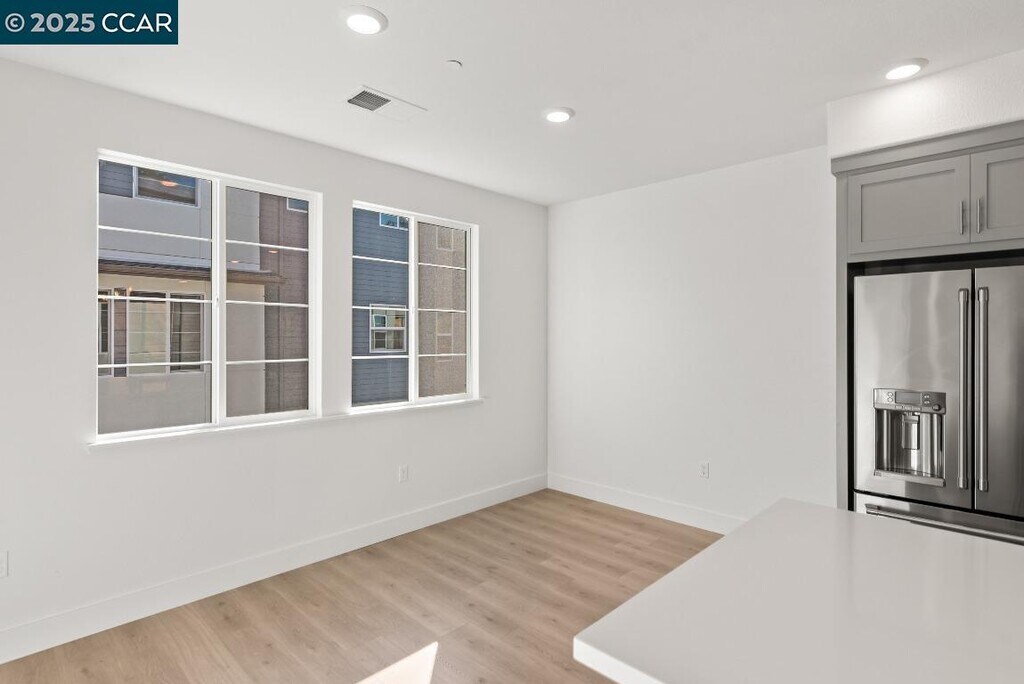 Rick RodriguezSituated in the heart of the San Francisco Bay Area, Hayward is a vibrant town with both the benefits of cool and warm weather while ideally situated close to fast commute to Silicon Valley & San Francisco thoroughfares and job centers. Minutes to Cal State East Bay and Chabot College beacons of higher education. The city boasts excellent restaurants while displaying a cacophony of cuisine for every palette. This home features modern living in this brand-new, three-level condominium boasting 1,885 sq. ft. of elegant space. Featuring 4 bedrooms, 3.5 baths, and a convenient two-car garage, this home is designed for both comfort and style. The first floor includes a versatile bedroom suite with an en-suite bath, perfect as a private home office. The second floor showcases a spacious open-concept layout with a Dining Room, Living Room, and a fully equipped Kitchen with a walk-in pantry. The third floor is dedicated to a luxurious master suite, complete with a large walk-in closet, dual vanities, and a walk-in shower. The home backs to open space providing a barrier of privacy to the outside world! Enjoy the convenience of being within walking distance of the BART station, making commuting and travel a breeze.