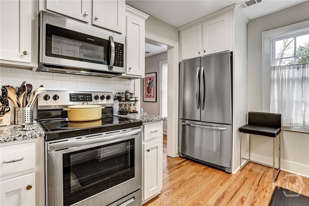 This classic 1946 Ardsley Park beauty with single car garage was completely updated in 2019. The exterior was given a new roof,HVAC system,and exterior paints. The interior upgrades included new paint,cabinetry,granite countertops,bathroom tile,light and plumbing fixtures,SS appliances,and a new water heater. The home features a fireplace in the living room,refinished hardwoods and carpet upstairs. The main level hosts two bedrooms and a full bath while there is a finished room upstairs. Enjoy the outdoors in the well-landscaped fenced yard. Lawn maintenance is included. Pets allowed on approval.