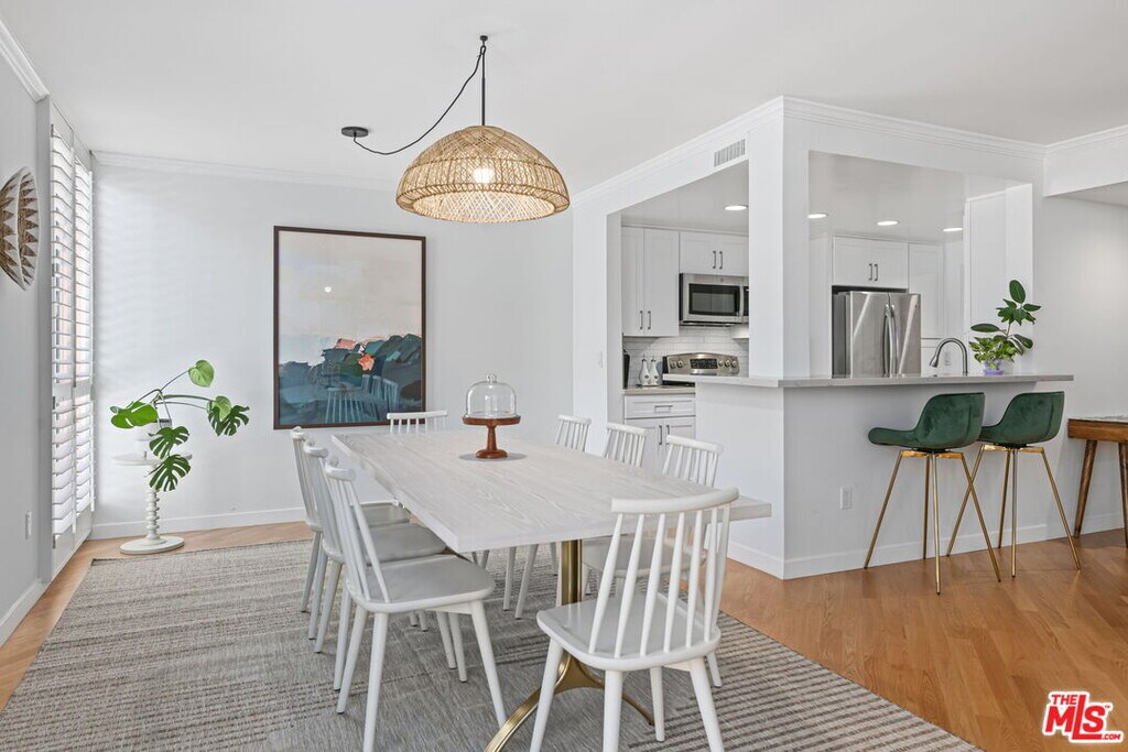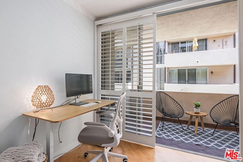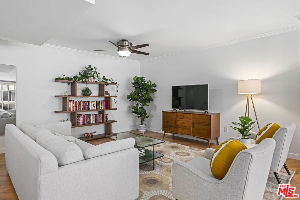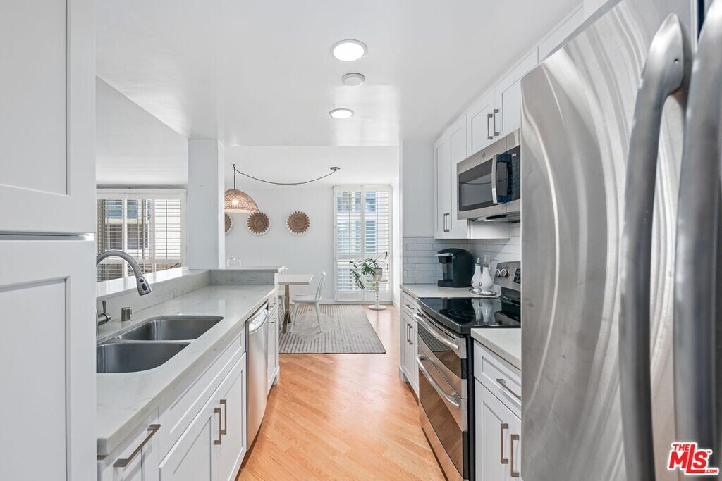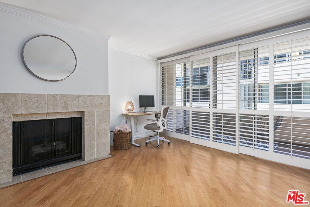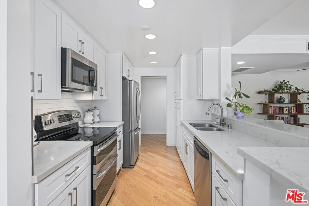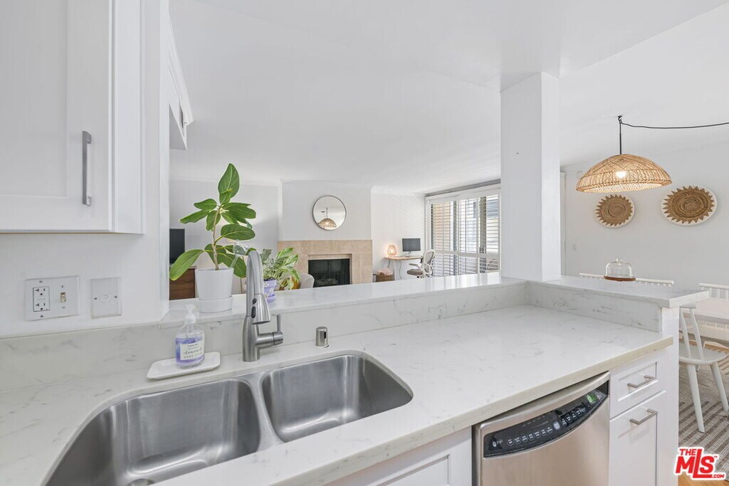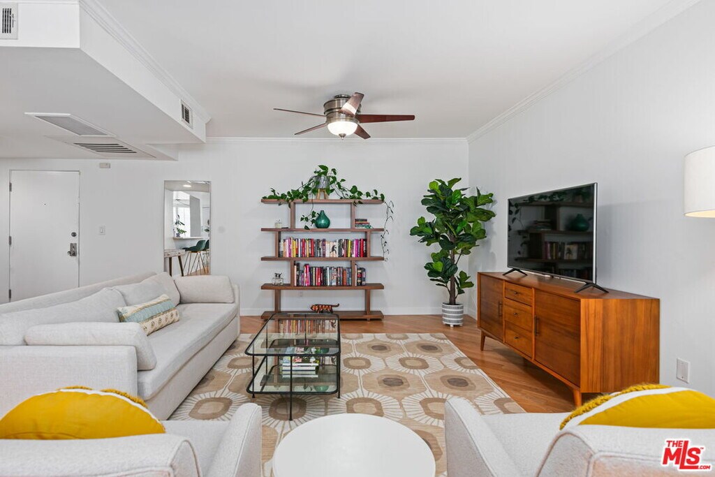 Discover this beautifully updated 1 bed/1 bath condo in a prime Brentwood location, just steps from San Vicente's best retail, coffee shops, and restaurants (Whole Foods, Jon & Vinny's, Starbucks). Enjoy an open floor plan with a living room, fireplace, and a flexible den area. A sliding door leads to a large, tiled balcony overlooking the courtyard patio and pool. The newly remodeled designer kitchen boasts quartz countertops, new cabinetry, and stainless steel appliances with a breakfast bar.The oversized primary bedroom features crown molding, new carpet, and a custom walk-in closet. The updated full bath includes a granite-top sink and glass shower. Additional features: new hardwood flooring, central A/C, and fresh paint.Includes gated parking with storage. Available now! MLS# 25571195