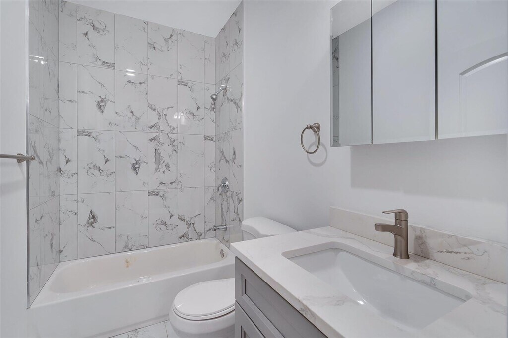 Welcome home to Aveena residence! This brand new construction luxury rental building is conveniently located a block away to NYC transportation! Spacious 2Br/2Ba feature exquisite finishes including an ultra modern gourmet kitchen with grey and white cabinets, Calcutta Lazza" quartz countertops and black Samsung stainless steel appliances. You will love the large primary bedroom and en-suite bathroom , consisting of beautiful porcelain tiles and chrome fixtures. Coveted appointments include central heat and air conditioning, hardwood floors throughout, nine foot ceilings and recessed lighting. There are so many different floor plans available - select units with balconies and NYC views! This beautiful 21 unit concrete building features a laundry room, elevator and garage parking! Easy commute, two blocks to NJ transit, direct bus line to NYC, and 10 minutes to Port Authority."