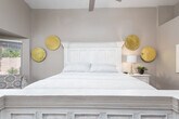 Welcome to Mojave's House, a beautifully fully furnished single-story home located in the sought-after area of North Scottsdale. This charming 3-bedroom, 2-bathroom single-family home is nestled in a gated community, offering easy access to the vibrant culture, nightlife, and natural beauty of the Valley of the Sun. With no stairs to climb, this home is perfect for all guests. Inside, you'll find a formal dining room and sitting room, a great room with a breakfast bar, another dining table, and a comfortable couch facing a large 82-inch TV. The fully stocked kitchen is ready for you to prepare your favorite meals, and the glass sliding doors open to an outdoor covered patio with lounge seating, a dining table, and chaise lounge chairs. Enjoy the propane BBQ and Traeger smoker, and take a dip in the brand new pool with a Baja step and umbrella. A private garage accommodates 2 cars, with additional parking available in the 2-car driveway. For those traveling with a dog, a pet cleaning fee applies, and the pet fee is non-refundable. Unfortunately, cats are not allowed. The home includes all linens, towels, and paper products for your convenience. Located in North Scottsdale, this home is just minutes away from restaurants and grocery stores, making it convenient for all your needs. The neighborhood offers a perfect blend of culture, nightlife, and natural beauty, ensuring you have plenty to explore during your stay. The pool is not heated, and guests are liable for any damages caused to the property. Free Wi-Fi is available throughout the home. Check-in and check-out details can be coordinated with your personal property manager. A Pack n’ Play or high chair is available upon request, subject to availability. A laptop computer is not included.