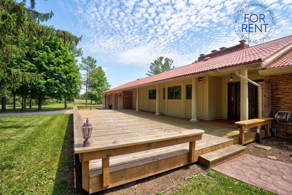 Private Estate Rental – Over 7,000 Sq Ft | Ponds, Tennis Court, & Resort-Style Living Just minutes from Grand Blanc, Goodrich, and I-75, this extraordinary private estate offers over 7,000 square feet of living space surrounded by natural beauty and upscale amenities. Nestled on a serene setting with picturesque ponds and a tennis court, the home feels like it's set within its own private wildlife preserve—peaceful, secluded, and truly one of a kind. As you enter via the lamppost-lined driveway and cross a charming covered bridge over tranquil water, you'll immediately feel the retreat-like atmosphere this home provides. Inside, rich hardwood floors guide you through expansive living and dining spaces filled with natural light. Large windows and door walls open to multiple levels of decking, offering stunning views of the grounds. The dining room features a striking stone fireplace and flows seamlessly into a chef's dream kitchen—equipped with two refrigerators, double ovens, dual dishwashers, two islands, a walk-in pantry, and a butler's pantry complete with a wine fridge and glassware storage—perfect for both everyday living and entertaining. The custom primary suite is a true sanctuary, featuring private deck access, a double-sided fireplace, a spa-like bathroom, a spacious walk-in closet with stackable laundry, and a flexible attached space ideal for an office, den, or nursery. The finished lower level offers a second primary suite with walkout access, four additional bedrooms with Jack & Jill bathrooms, a sewing room, a library/rec room, and a dedicated laundry and storage area. The basement provides additional bonus space ideal for a home theater, gym, or game room. Step outside to multi-level decking overlooking two scenic ponds. The upper deck includes a hot tub room, while the lower level offers storage for outdoor furnishings and potential space for a cocktail or ice cream bar. This one-of-a-kind property offers a lifestyle rarely available for lease—private, spacious, and designed for both comfort and entertaining. Available for qualified tenants. Inquire today for additional details or to schedule a private showing. Private Estate Rental – Over 7,000 Sq Ft | Ponds, Tennis Court, & Resort-Style Living Just minutes from Grand Blanc, Goodrich, and I-75, this extraordinary private estate offers over 7,000 square feet of living space surrounded by natural beauty and upscale amenities. Nestled on a serene setting with picturesque ponds and a tennis court, the home feels like it's set within its own private wildlife preserve—peaceful, secluded, and truly one of a kind. As you enter via the lamppost-lined driveway and cross a charming covered bridge over tranquil water, you'll immediately feel the retreat-like atmosphere this home provides. Inside, rich hardwood floors guide you through expansive living and dining spaces filled with natural light. Large windows and door walls open to multiple levels of decking, offering stunning views of the grounds. The dining room features a striking stone fireplace and flows seamlessly into a chef's dream kitchen—equipped with two refrigerators, double ovens, dual dishwashers, two islands, a walk-in pantry, and a butler's pantry complete with a wine fridge and glassware storage—perfect for both everyday living and entertaining. The custom primary suite is a true sanctuary, featuring private deck access, a double-sided fireplace, a spa-like bathroom, a spacious walk-in closet with stackable laundry, and a flexible attached space ideal for an office, den, or nursery. The finished lower level offers a second primary suite with walkout access, four additional bedrooms with Jack & Jill bathrooms, a sewing room, a library/rec room, and a dedicated laundry and storage area. The basement provides additional bonus space ideal for a home theater, gym, or game room. Step outside to multi-level decking overlooking two scenic ponds. The upper deck includes a hot tub room, while the lower level offers storage for outdoor furnishings and potential space for a cocktail or ice cream bar. This one-of-a-kind property offers a lifestyle rarely available for lease—private, spacious, and designed for both comfort and entertaining. Available for qualified tenants. Inquire today for additional details or to schedule a private showing.