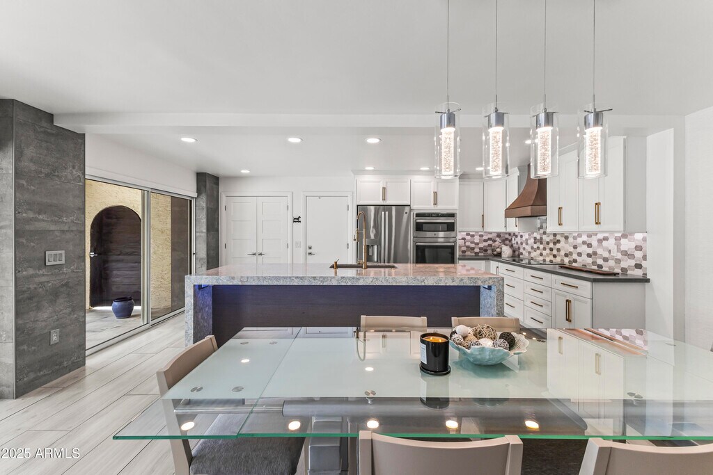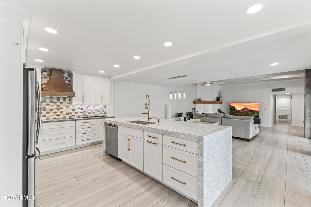 Welcome to your dream home in the vintage Spanish Revival community of Santo Tomas. Here luxury meets coastal charm in the prestigious McCormick Ranch. This stunning,fully remodeled residence,featured on A&E's hit show ''New House No Debt,'' epitomizes the essence of indoor/outdoor living. Step inside and be greeted by expansive sliding doors that flood the home with natural light,enhancing the inviting coastal vibe throughout.At the heart of this exquisite property is the chef-inspired kitchen,featuring high-end white cabinetry and a striking island with a gorgeous Cambria quartz waterfall countertop,perfect for culinary enthusiasts and entertaining. Retreat to your spacious primary suite,a personal sanctuary that adjoins a spa-like bathroom,complete with a roomy walk-in shower and your own sauna for ultimate relaxation.The outdoor space is an entertainer's paradise,showcasing a beautifully remodeled pool with a playful splash pad,ideal for children and pets alike. The thoughtfully designed courtyard layout ensures total privacy,enveloped by lush tropical landscaping and fruit trees,creating a serene escape. Enjoy outdoor movie nights on the patio,designed for gatherings under the Arizona sun or starlit skies.Nestled among multi-million dollar estates,this modern vintage Spanish Revival home offers not just luxury but a sought-after lifestyle. You're just steps away from scenic walking and biking trails,picturesque ponds,and a short stroll to the renowned McCormick Ranch Golf Club. Foodies and shoppers will revel in the proximity to Scottsdale Quarter and Fashion Square,where a diverse selection of top-tier dining and boutique shopping awaits.This exceptional property is not just a home; it's a lifestyle upgrade,seamlessly blending modern luxury with timeless tranquility. Whether you're unwinding by your private pool or exploring the vibrant local scene,this Modernized Spanish Revival gem promises a life of elegance and comfort. Don't miss your chance to own this piece of paradise!