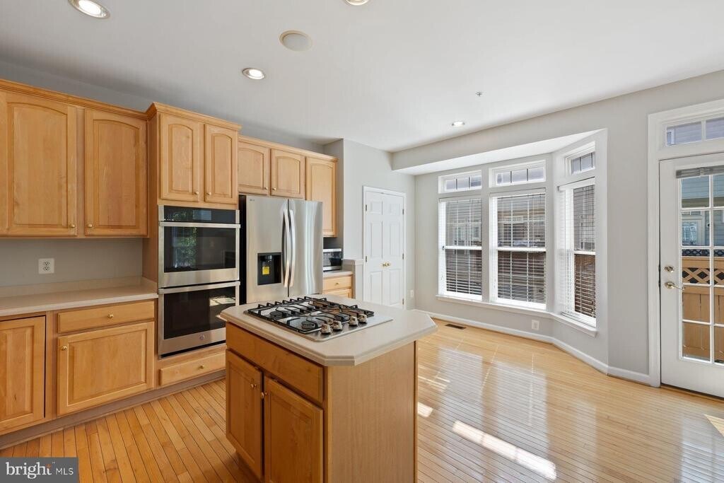 Stunning End-Unit Townhouse in Prime Alexandria Location - 4BR + Loft - 2-Car Garage Rarely available and impeccably maintained, this light-filled 4-bedroom, 2.5-bath end-unit townhouse with loft and 2-car garage offers luxury living in the highly sought-after Old Town Greens community. Step inside to find fresh paint and brand-new carpet (September 2025) throughout the home. The entry level features hardwood floors in the foyer and stairs, a versatile bedroom/office/den, convenient half bath, and laundry room. The main level boasts gleaming hardwood floors and an open-concept layout with large windows, built-ins, and a cozy gas fireplace. The spacious kitchen includes Corian countertops, pantry, and brand-new stainless steel refrigerator and double oven (installed October 2025). A bay window dining/sitting area with a gas fireplace adds charm and warmth. Upstairs, the primary suite impresses with vaulted ceilings, a custom walk-in closet, and a spa-like en-suite bath with jacuzzi tub, double vanity, and modern faucet and light fixtures (September 2025). Two additional bedrooms with custom closets share a full bath and linen closet. The top-level loft with closet is perfect for a home office, gym, nursery, or additional dressing room. Additional highlights: 2-car garage with bonus refrigerator; Community pool & playground; Walkable to Potomac Yard Metro, shops, dining, and markets; easy access to GW Bike Trail and Old Town Alexandria Ideal commuter location: just 2 stoplights to DC and close to Reagan National Airport, the Pentagon, Fort Belvoir, Amazon HQ2, Virginia Tech Innovation Campus, and numerous military installations. Don’t miss this exceptional rental opportunity in one of Alexandria’s most desirable neighborhoods!