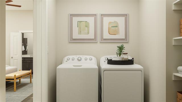 This home is professionally managed by Tricon Residential, dedicated to creating exceptional rental experiences. Featuring 3 bedrooms, 2.5 Bathrooms, and approximately 2004 square feet, this well-maintained home offers a high standard of rental living, supported by a team that puts residents first. Tricon Viridian is a charming rental community situated in Arlington, just 25 minutes west of Dallas-Fort Worth. Every home includes a gourmet kitchen, stainless steel appliances, in-home washer and dryer, an attached two-car garage, a fully fenced backyard, and smart home technology. Enjoy resort-style amenities such as a pool, tot lot and playground, mountain bike trails, tennis center, volleyball court and Viridian Lake Club. Images are artist renderings and may not reflect final construction.