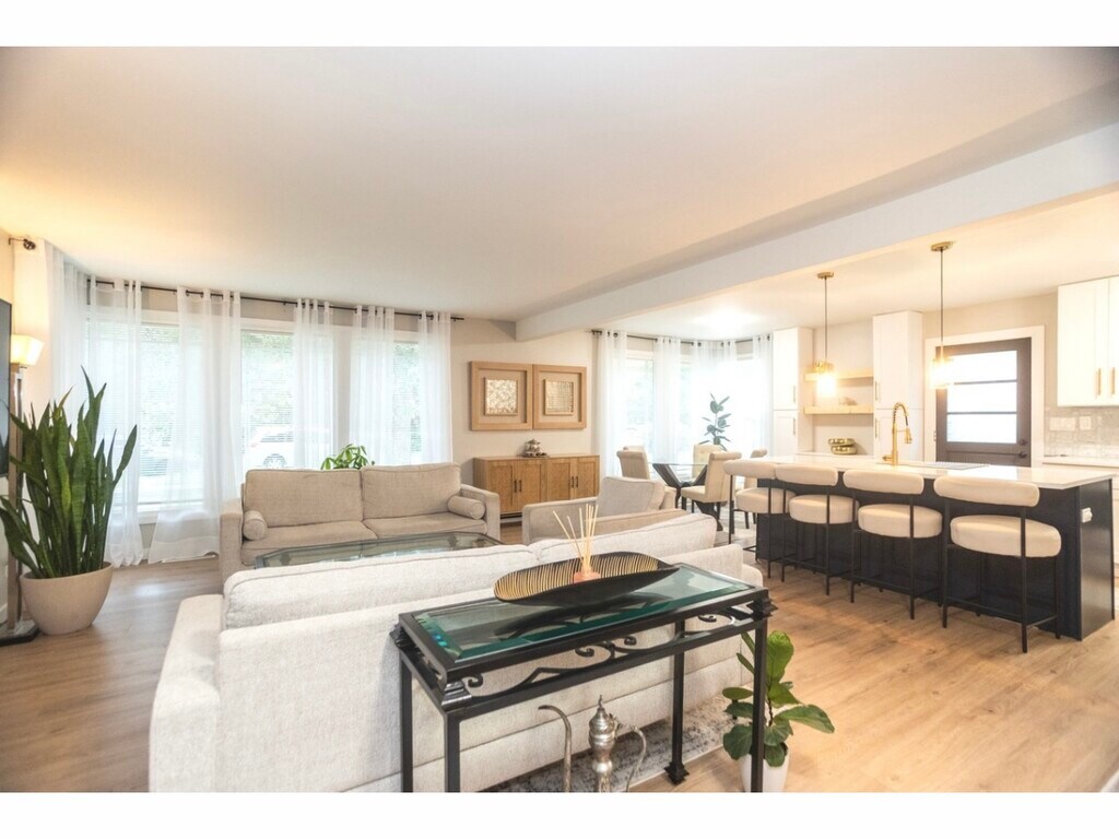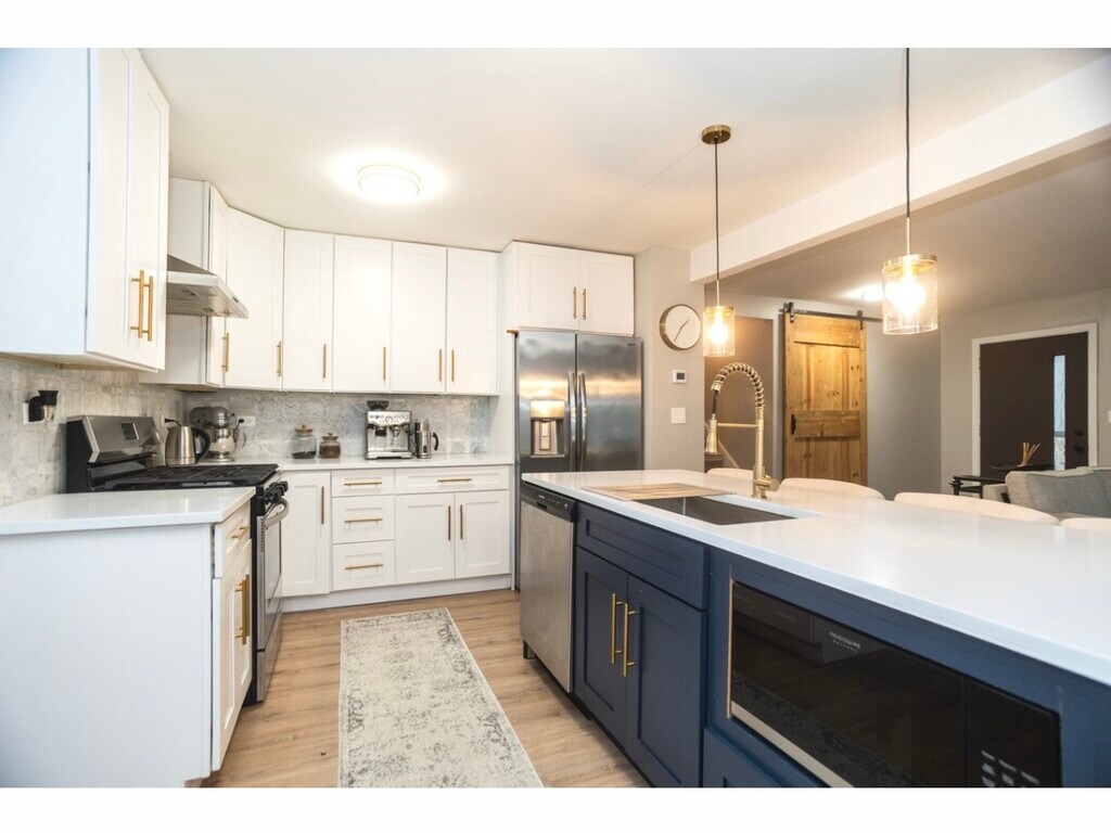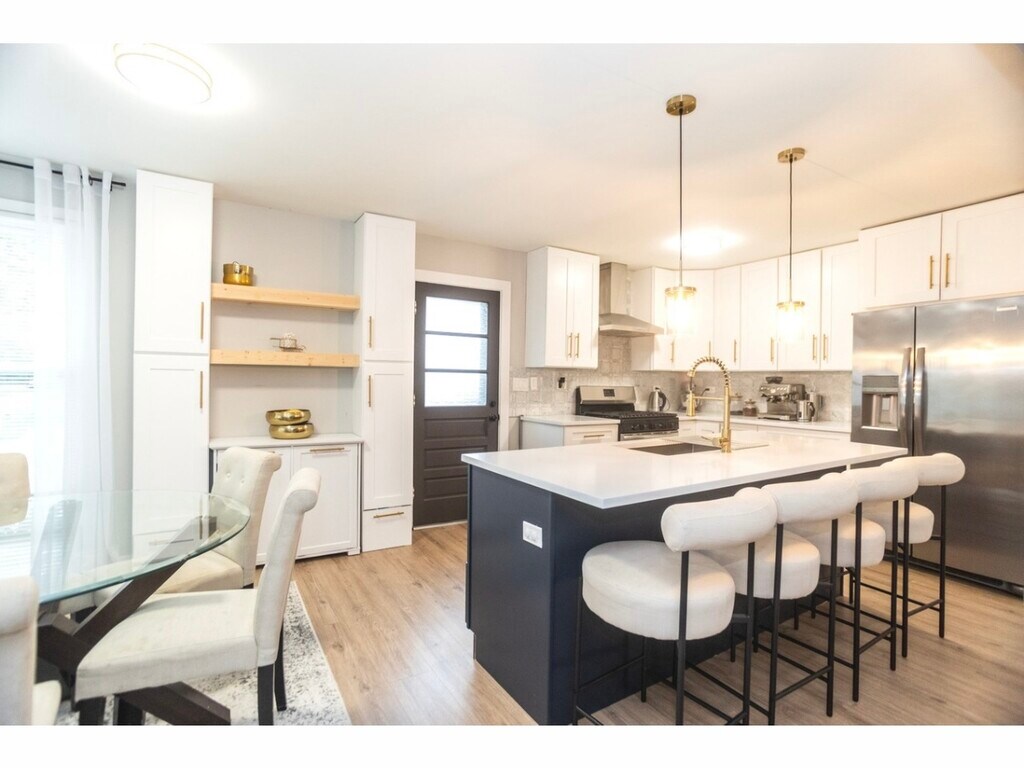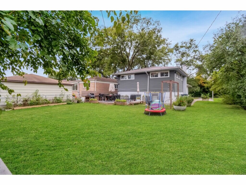 Remodeled, move-in-ready split-level home in Wilmette, located in the highly sought-after New Trier School District. This 3-bed, 2-bath home features a bright open floor plan ideal for family living & entertaining. The sun-filled main level has a cozy fireplace & a modern eat-in kitchen with white cabinetry, navy accent island, quartz countertops, marble backsplash, gold hardware, & stainless-steel appliances. New luxury laminate flooring throughout. Upstairs includes 3 spacious bedrooms & two 2 bathrooms, including a private primary suite with an ensuite bath. The finished walk-out basement provides additional living space with a large family room, second fireplace, & dry bar/coffee station. Step outside to the yard to a private deck with built-in grills, space for dining & lounging. Brand-new windows, electric panel, meter, and incoming power line. Driveway parking for 3 cars. Close to Blue Ribbon schools, parks, bike trails, shopping, expressways, and minutes to Old Orchard.