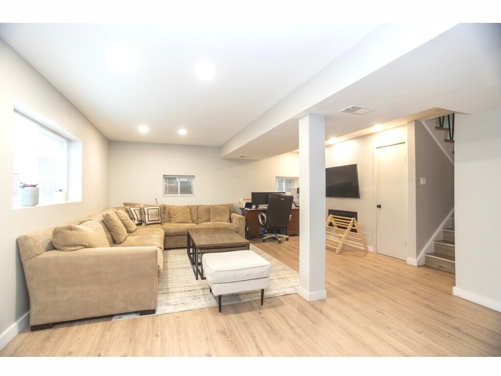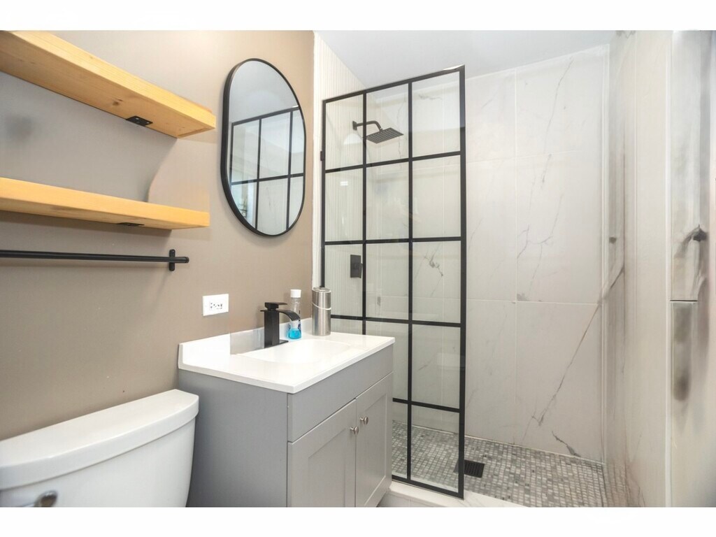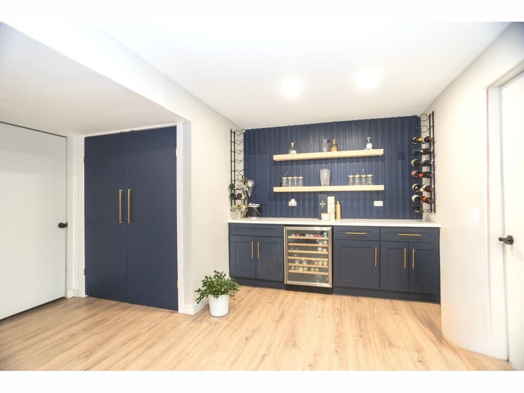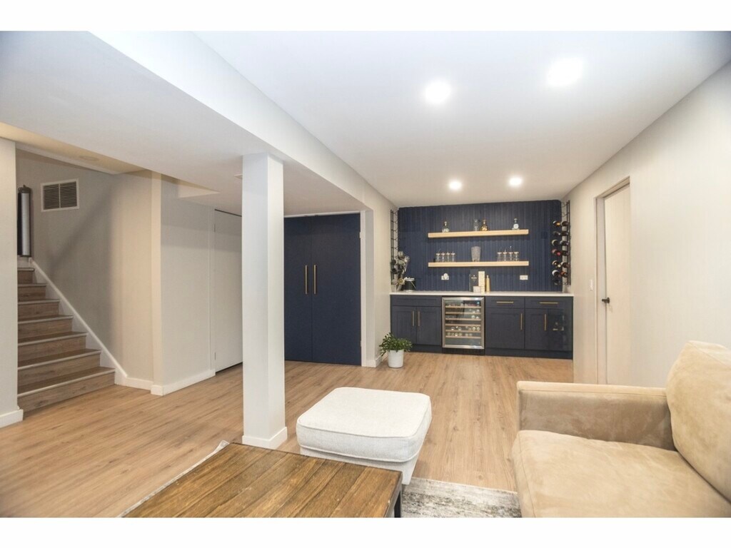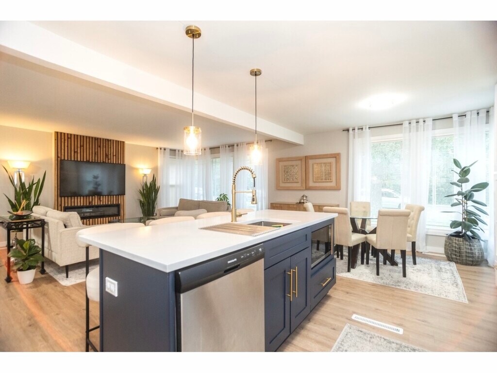 Remodeled, move-in-ready split-level home in Wilmette, located in the highly sought-after New Trier School District. This 3-bed, 2-bath home features a bright open floor plan ideal for family living & entertaining. The sun-filled main level has a cozy fireplace & a modern eat-in kitchen with white cabinetry, navy accent island, quartz countertops, marble backsplash, gold hardware, & stainless-steel appliances. New luxury laminate flooring throughout. Upstairs includes 3 spacious bedrooms & two 2 bathrooms, including a private primary suite with an ensuite bath. The finished walk-out basement provides additional living space with a large family room, second fireplace, & dry bar/coffee station. Step outside to the yard to a private deck with built-in grills, space for dining & lounging. Brand-new windows, electric panel, meter, and incoming power line. Driveway parking for 3 cars. Close to Blue Ribbon schools, parks, bike trails, shopping, expressways, and minutes to Old Orchard.