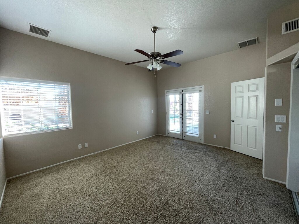 This 3 bedroom + den/office, 2 bath home is located in the residential estate / golf course neighborhood . Spacious, bright and airy home is 1852 square feet, split floor plan has a 2 car garage. Great backyard with pool ,mature landscaping and a palapa, the front court yard is quaint and offers a covered patio. Being rented unfurnished with a 1 year lease .