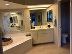 Seasonal monthly rental in Desert Falls Country Club. Guests have access to the sports club,clubhouse,bar & restaurant & spa & tennis courts. Very spacious 3 bedroom & 2 1/2 bath condo with vaulted ceilings. Very new furnishings in living room,dining room & primary bedroom as well as new flooring,brand new Stainless Steel appliances. King bed in primary bedroom,Queen bed in guest bedroom. Sofa beds in living room & 3rd bed/den/office. Very well stocked eat-in kitchen with every small appliance you might need. Large pantry,spacious kitchen with lots of counter space for serving big gatherings. Views from both patios. Back patio overlooks the pool & spa. Front patio looks West over the mountains. All NEW patio furniture on both decks. The back deck overlooks the pool & spa. Various citrus trees & a parklike setting surround the pool & spa. Condo is close to shopping,Ralph's grocery store and many well know restaurants are just across the street on Country Club & Cook. Marriott Desert Springs Resort is adjacent to the complex. Golf is available on a ''pay as you play'' basis. Four bicycles are for guests' use. Plenty of pool toys also available.Great location to attend all the music festivals and the BNP Paribas tennis tournament as well many golf courses within a 10 minute drive. Close to the I-10 freeway,Eisenhower Medical Center and El Paseo Drive shopping. Booked January 15 through February 28,2026. All other months available.